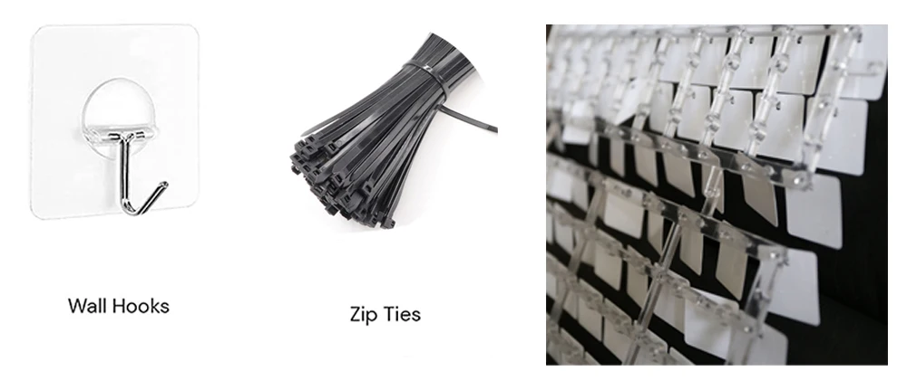 Installation method 1: Use zipper tie + wall sticker hook to assemble and hang on the wall