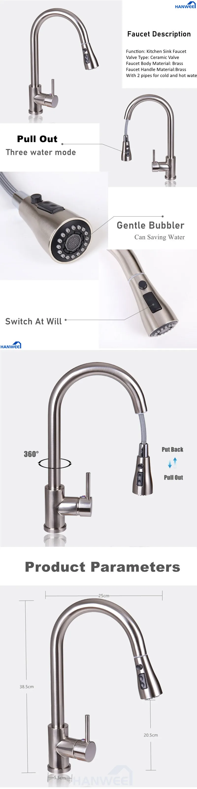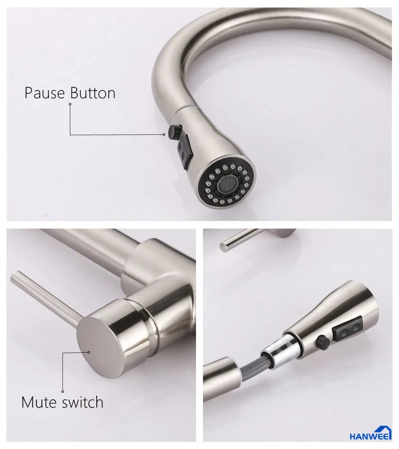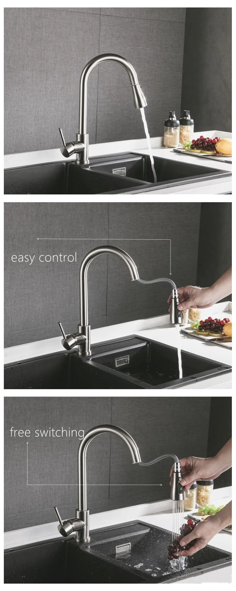 Матовый никелевый смеситель, кран с одним отверстием, выдвижной носик, кран и смеситель для кухонной раковины с распылителем, хромированный/черный кухонный кран