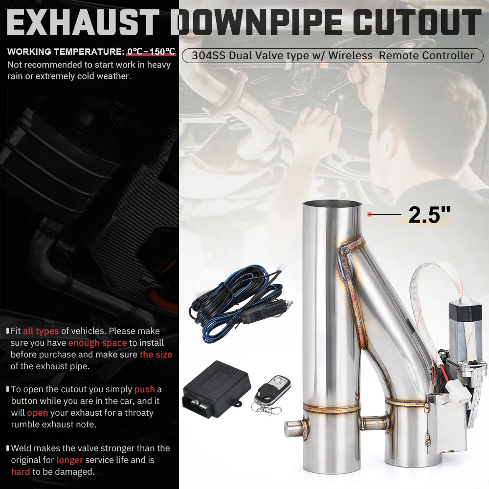 Универсальный 2 "2,25" 2,5 "3" двойной клапан электрический выхлоп выхлопа клапан выхлопной трубы глушитель комплект с беспроводным пультом дистанционного управления EMP84/85/86/87