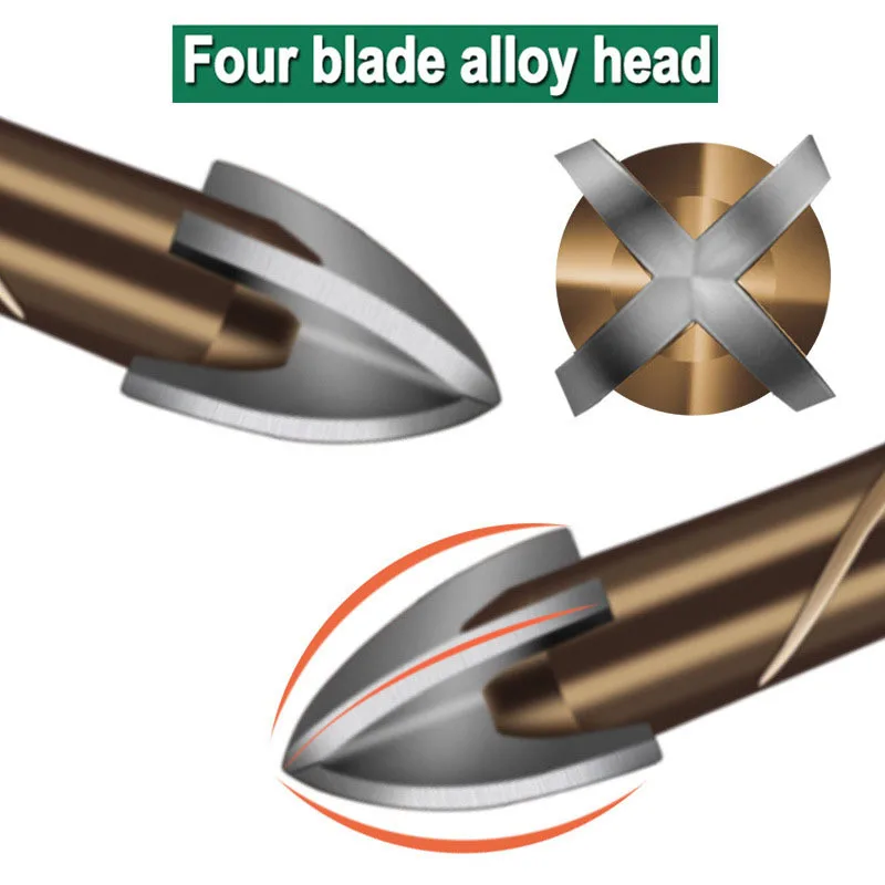 Характеристики Товара: Материал: сплав Тип бит: сверло для плитки и стекла Покрытие: титан Диаметр сверла: 3 мм/4 мм/5 мм/6 мм/8 мм/10 мм/12 мм Особенности: 1. Обладает высокой прочностью и износостойкостью 2. Сопротивление разрезам маленькое, увеличивает скорость открытия, долгий срок службы 3. Твердосплавная точка промышленного класса с 4 режущими кромками 4. Может быть установлен в ручную дрель, электродрель 5. Подходит для керамики, гранита, плитки, камня, дерева, пластика, бетонной стены для сверления отверстий Посылка входит: 1 шт. х сверло