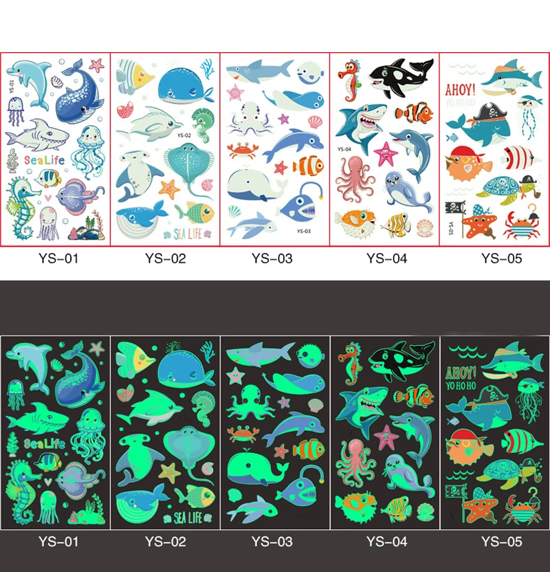 5 шт. светящиеся наклейки на татуировку Детские временные искусственные татуировки светящаяся паста на лицо рука ноги для детей тело искусство мультфильм наклейки