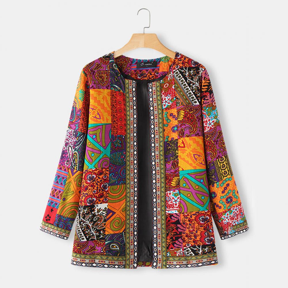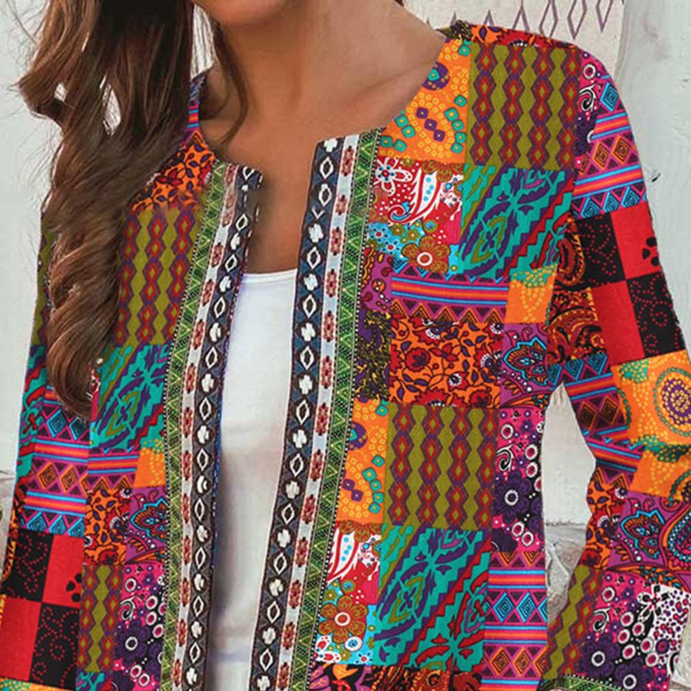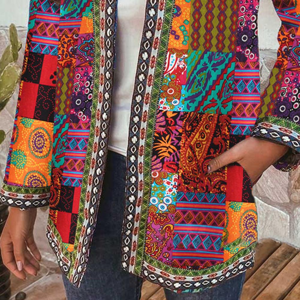 Кардиган с принтом, не позиционирующий, этнический, женский, длинный рукав, открытая строчка, пальто для отдыха