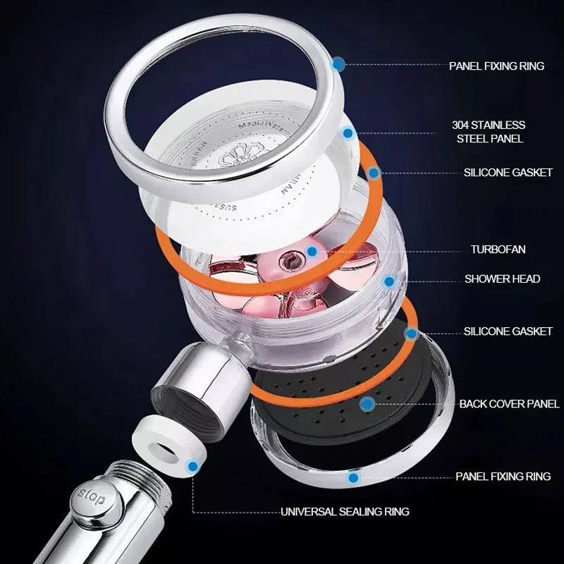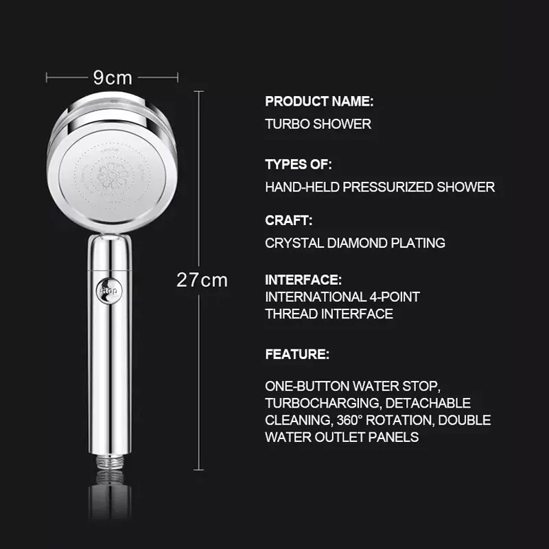 Насадка для душа использует технологию микросопла делает отверстия на выходе меньше и плотнее, увеличивая скорость потока воды, в то же время до 30% экономии воды, чем обычная насадка для душа.