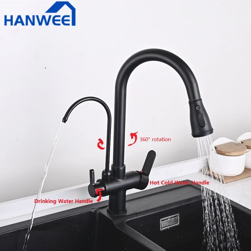 Черный кухонный кран для гурманов фильтрованный кран для кухни выдвижной спрей 360 Вращение водопроводный фильтр кран 3 способа смеситель для раковины кран для кухни