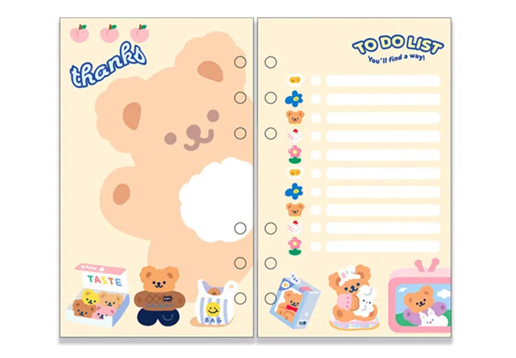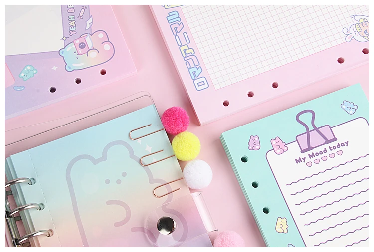 50 листов Kawaii Bear A6 бумага для ноутбука пополнение спирального переплета индекс внутри страницы ежедневный ежемесячный недельный заметки по повестке дня блокнот