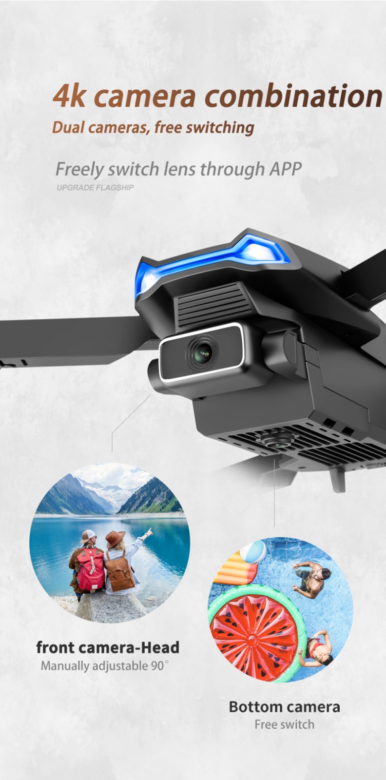 Со складными ручками, это Компактный и удобный в переноске. Функция режима удержания высоты может Обеспечивает стабильный полет. С функцией wifi, вы можете Подключение к приложению, системе APK для съемки фотографий и видео и передачи изображений В режиме реального времени через камеру телефона. Используйте широкоугольную камеру 4K для Предоставляет широкий спектр фотографий и видео высокой четкости. Использование режима без головы, Нет необходимости регулировать положение самолета перед полетом. С функцией возврата ключа, Вы можете легко найти дорогу домой. Баллистический полет. Нарисуйте a Полет на экране, и Дрон будет летать автономно вдоль Обозначенное направление. Защита от помех 2,4 ГГц технологии. 4 канала, может идти вверх, вниз, Вперед, назад, летите влево, летите вправо и Поворачивайте на 360 °. 6-a-xis g-yro может летать больше Стабильно и легко управлять. Он имеет 3 уровня полета Переключение скорости, которое может сделать полет более интересным. Четырехъядерные процессоры ротора фюзеляжа Изготовлен из высокопрочного и инженерного пластика, который является светильник и долговечный. Функции: вверх/вниз, Вперед/назад, влево/вправо, боковой полет, трехуровневая скорость полета, светодиодный Освещение, Безголовый режим, автоматическое возвращение одной кнопкой, режим удержания высоты, WiFi FPV, траектория полета, камера/видеоПосылка включает в себя: