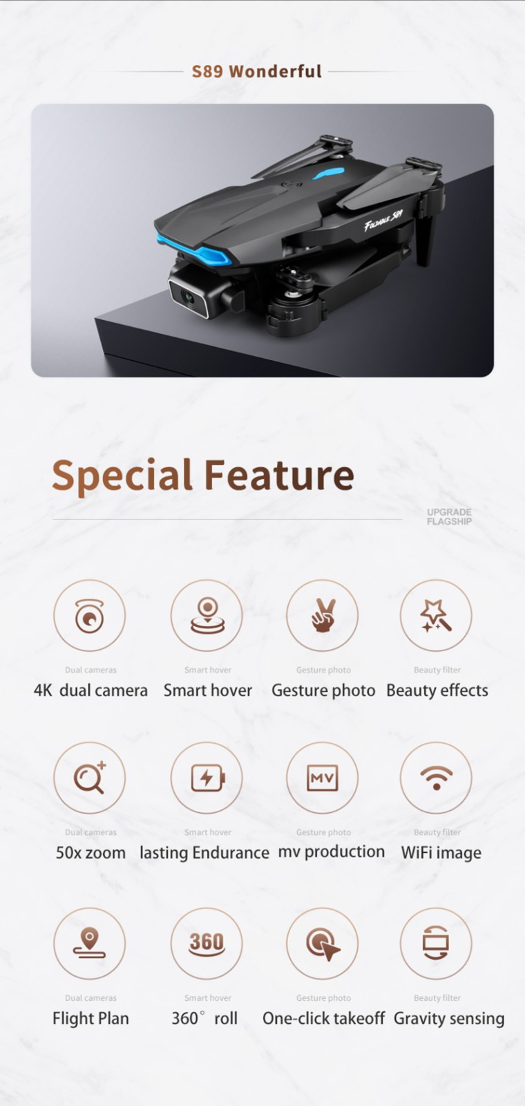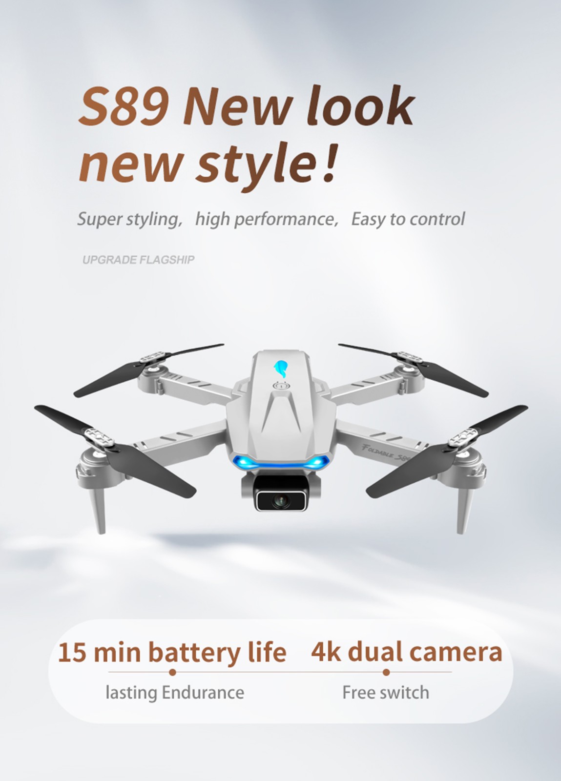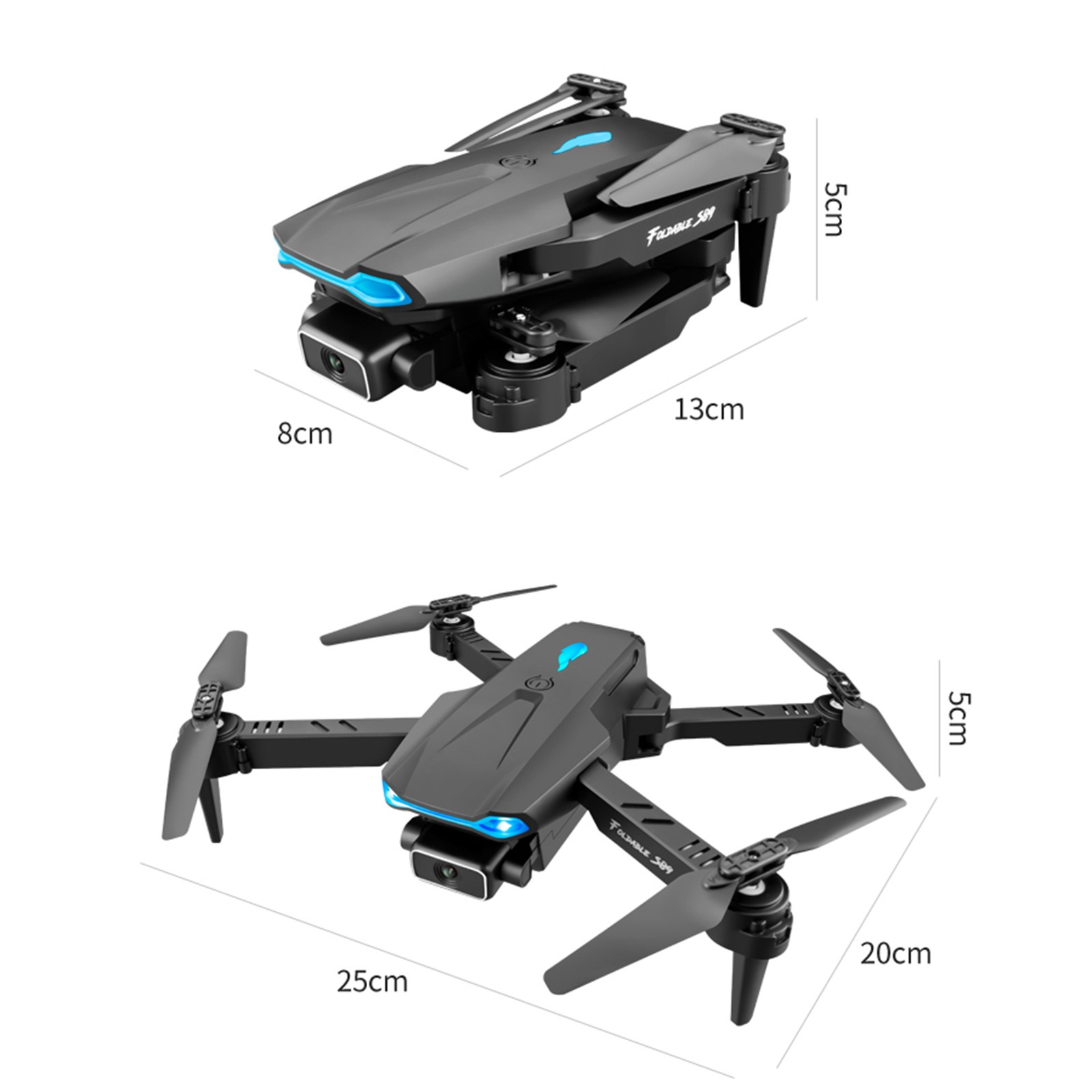 1 x Квадрокоптер S89 RC Передатчик-1 шт. 1x3,7 V 1800 мА/ч, литий-ионный Аккумулятор (количество батарей можно выбрать при заказе) 1 х USB кабель для зарядки 4 защитных чехла 4 запасных лезвия 4