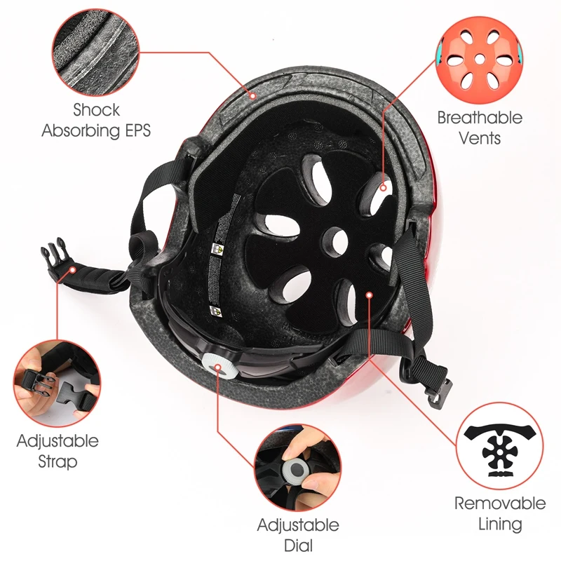 Крутой комфорт-шлем скутера для детей дышащий и удобный. Несколько вентиляционных отверстий обеспечивают вентиляцию и рассеивание тепла, сохраняя прохладу и сухость головы вашего ребенка.