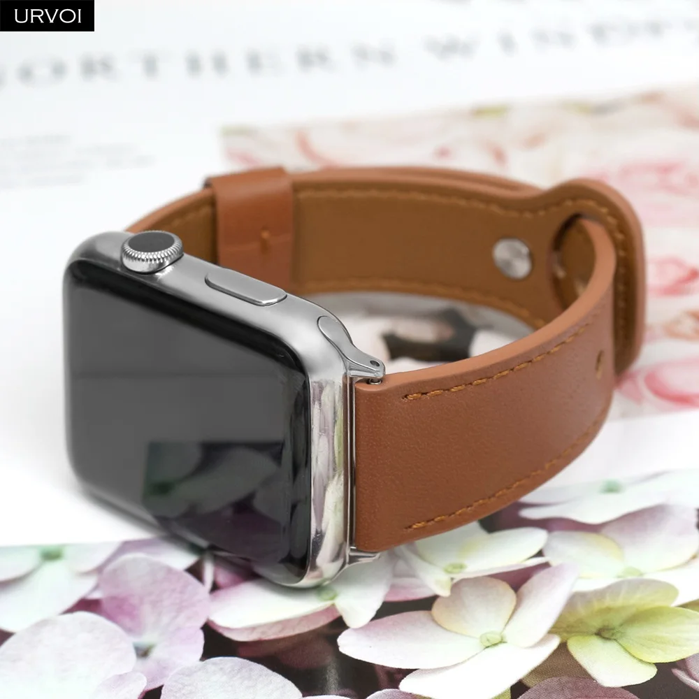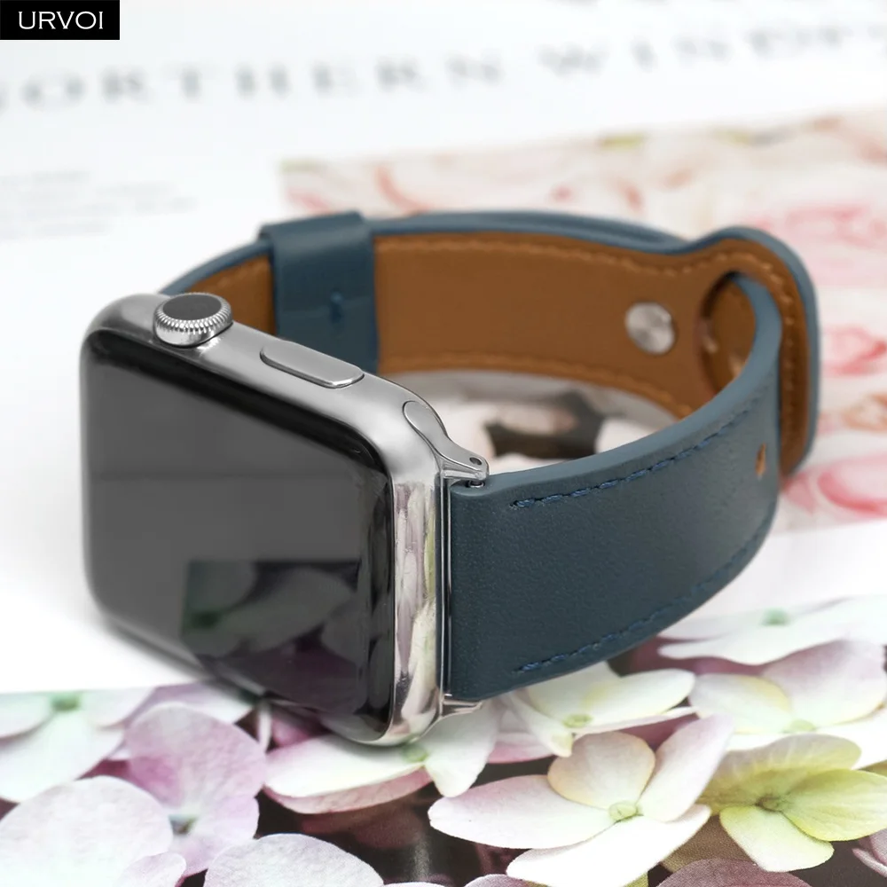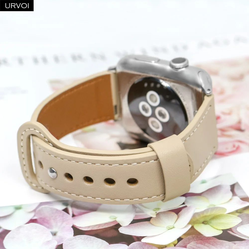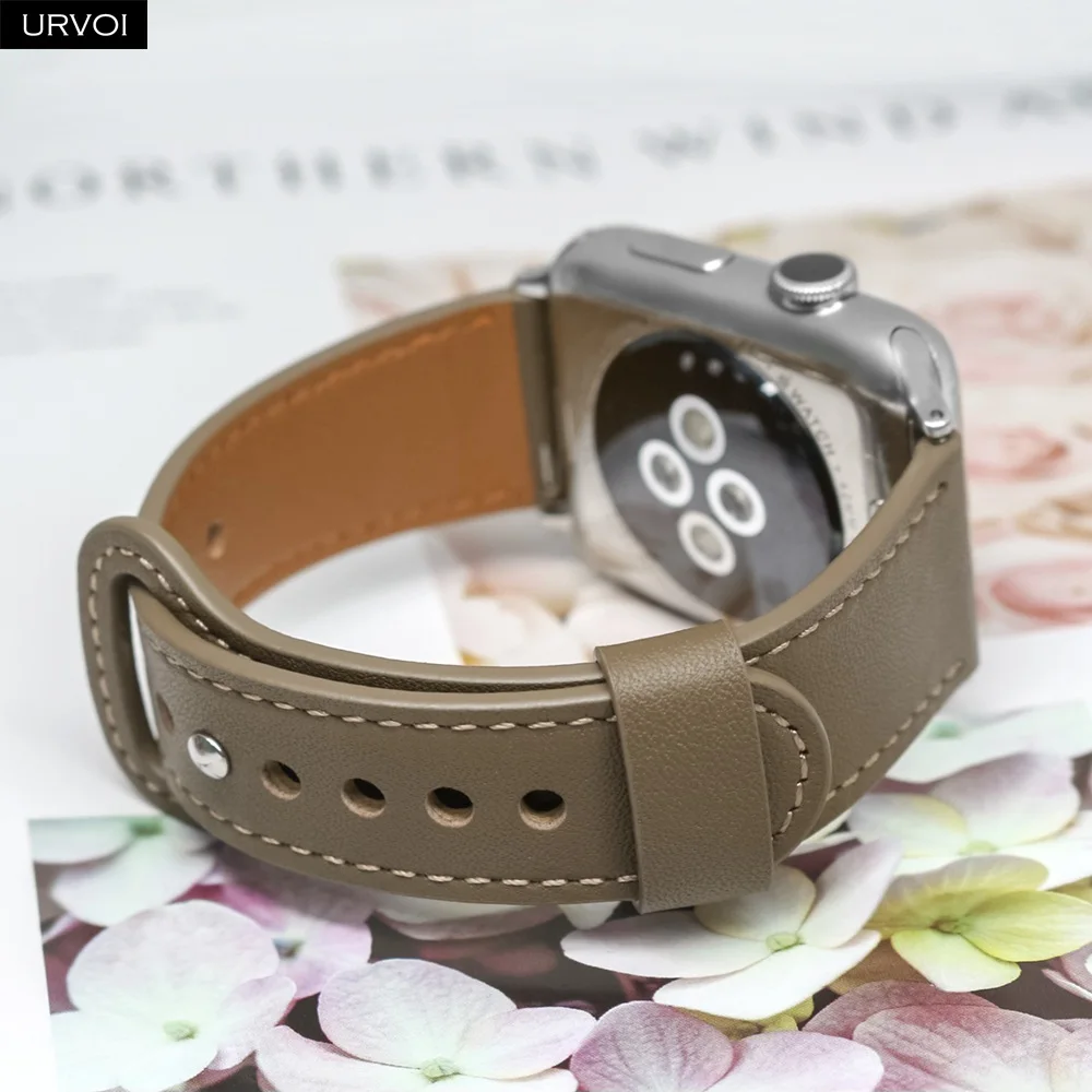 URVOI ремешок для Apple Watch series 6 SE 5 4 3 2 1 спортивный ремешок из натуральной кожи Пряжка для iWatch современный дизайн одно кольцо