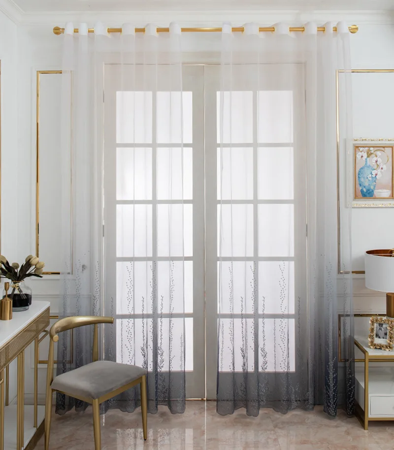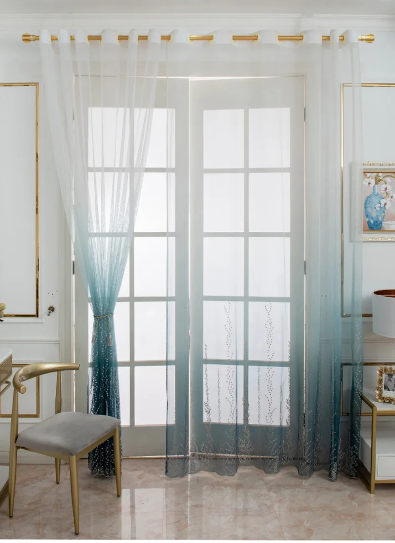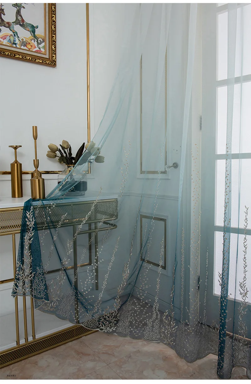 ID продукта: TJ3987 Название продукта: градиентная вышитая занавеска Материал: полиэстер Цвет: серый, синий Вес: 0,5 кг Посылка включает в себя: 1 шт. * градиентная вышитая занавеска Не включает: штанга для штор