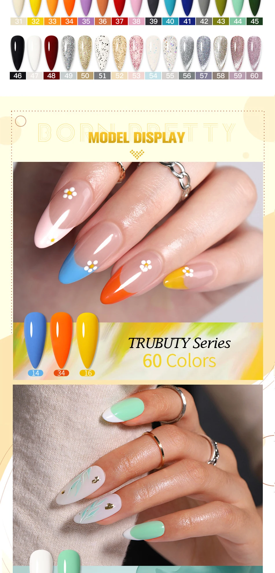 Длительный срок службы не менее 15-21 дней, фантастические и супер яркие ногти для вас.