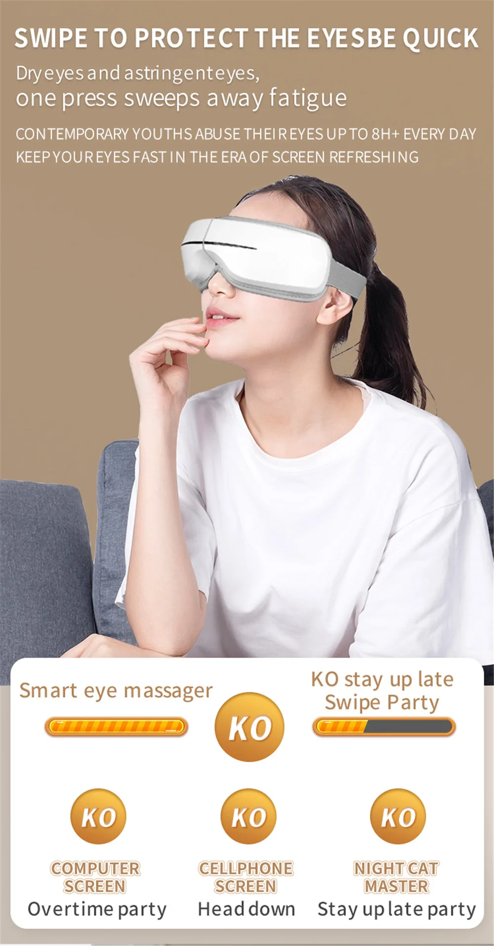 Массажер для глаз использует микрокомпьютерную технологию управления чипом для полного гуманизированного управления симуляцией. Новая концепция давления воздуха применяется для ухода за глазами. Давление воздуха контролируется компьютером для выполнения полного диапазона давления на мышцы вокруг глаз, И в то же время сотрудничество с внутренним эффектом точки вибрации и нагревательным эффектом дальних инфракрасных лучей может облегчить болезненность глаз, боль в глазах и усталость глаз.