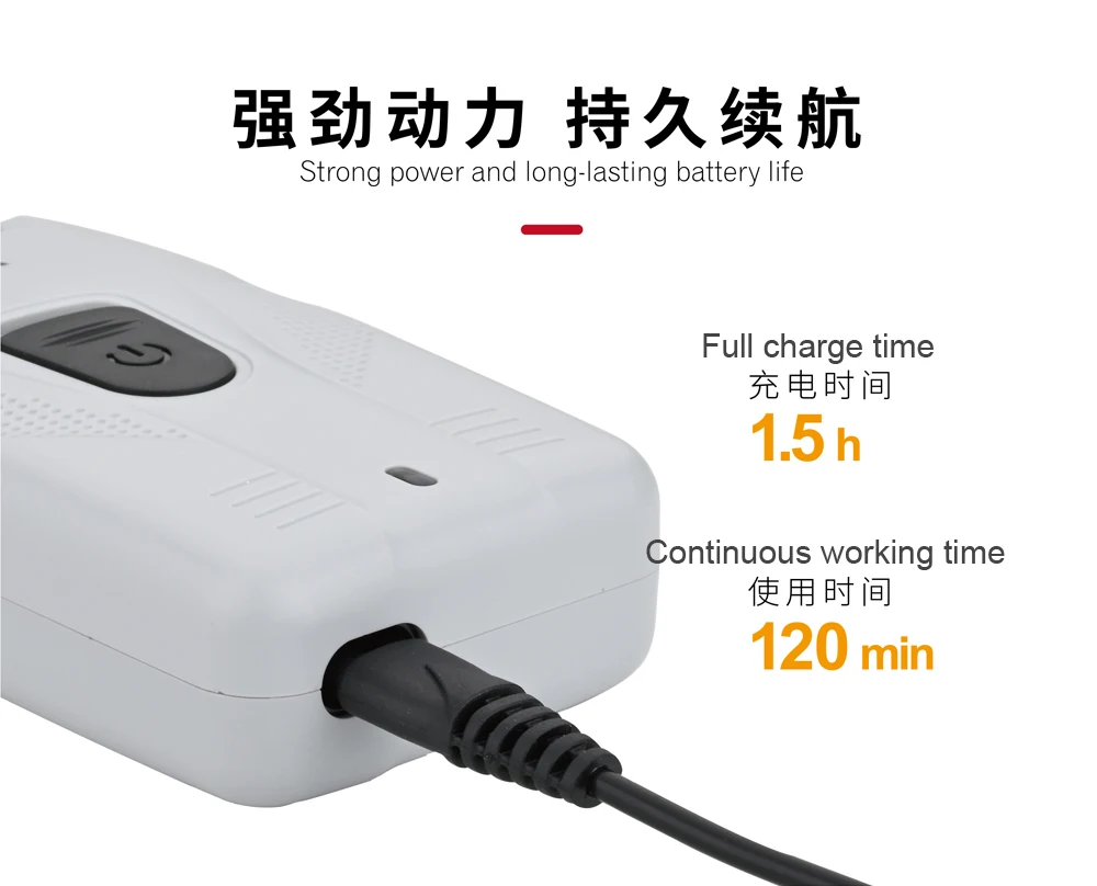 • 1,5 часов для полной зарядки для 120 мин использования.