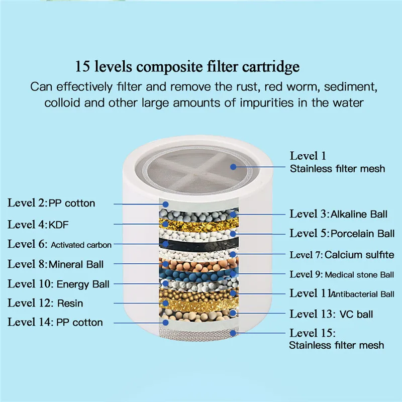 15 слоев кухонного крана, фильтр для воды, душевой кран, очиститель воды, умягчитель, Удаление хлора, фильтр ржавчины, бактерии, очистители водыHB236-55