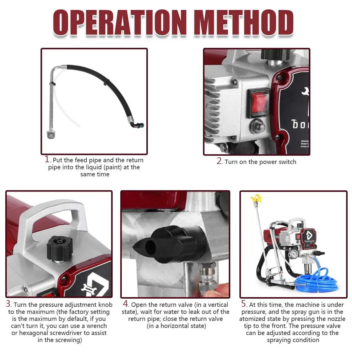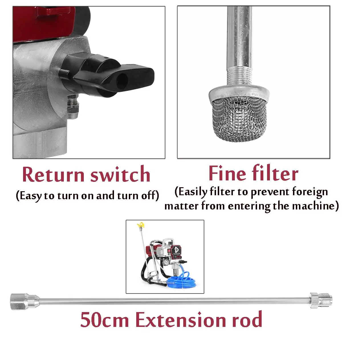 ● Хорошо оборудованный: В комплект входит пистолет-распылитель, фильтр, смазочное масло, трубка высокого давления 10 м, удлинитель 50 см, всасывающая трубка, напорный механизм