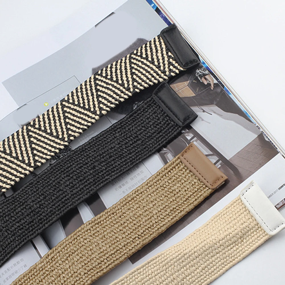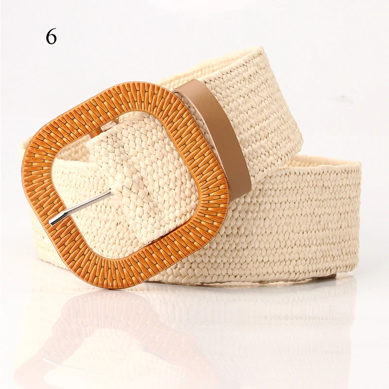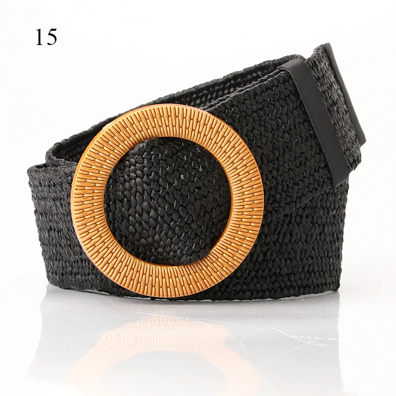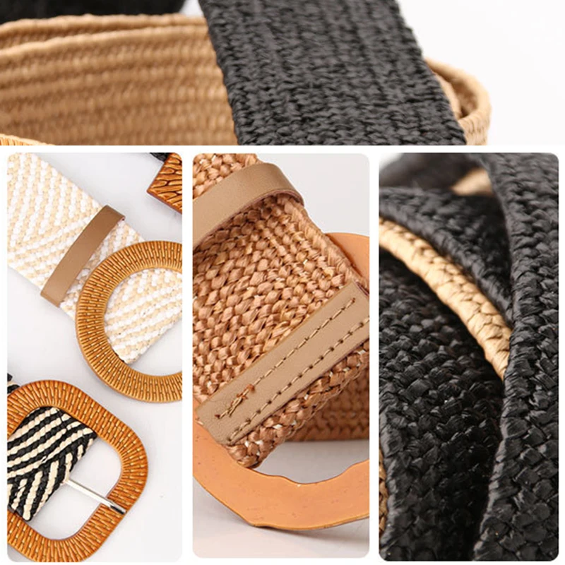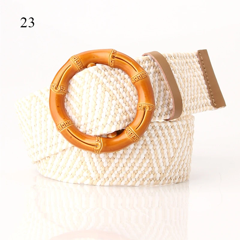 Винтажный плетеный пояс в стиле бохо, Круглый Деревянный широкий ремень с гладкой пряжкой