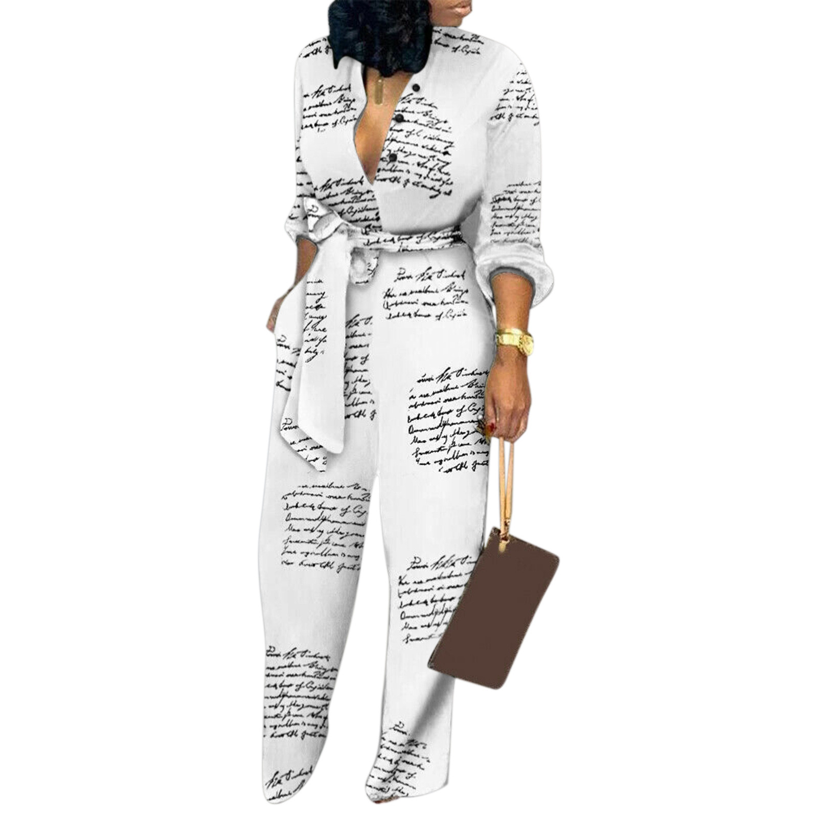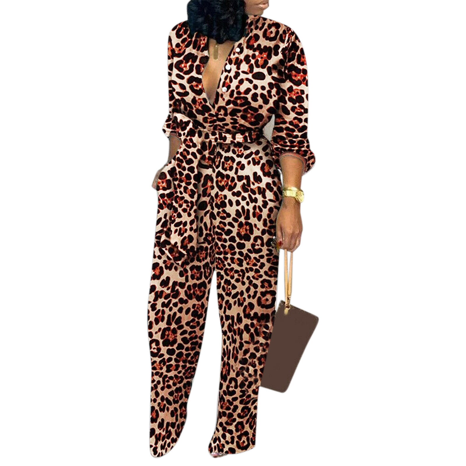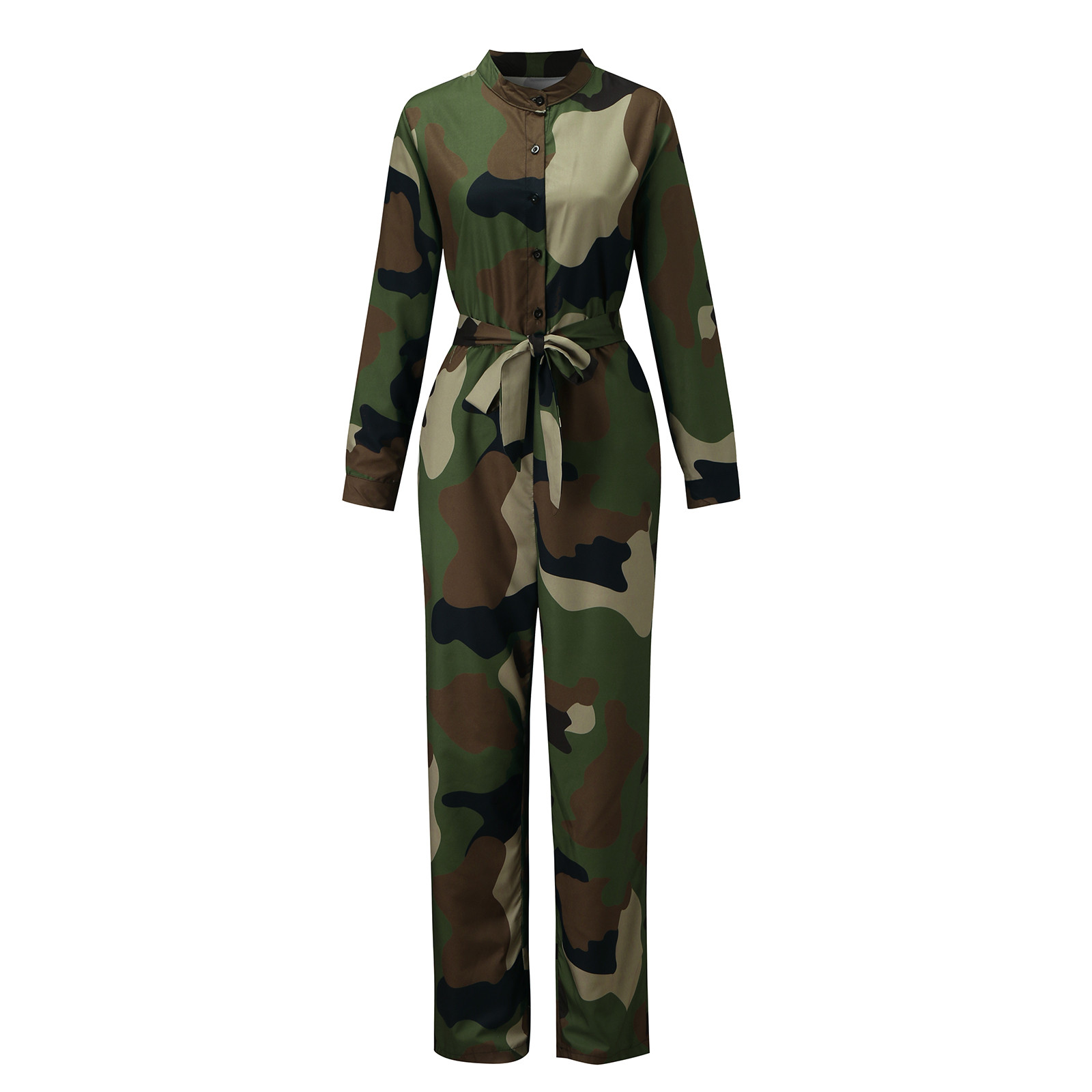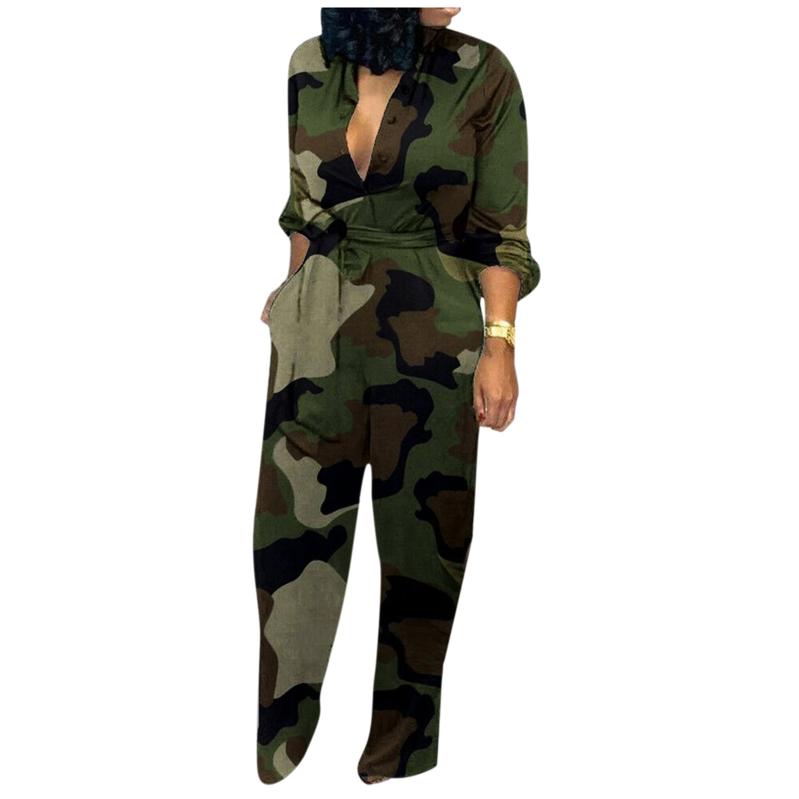 Женский Повседневный комбинезон с длинными рукавами и карманом, длинный комбинезон с пуговицами