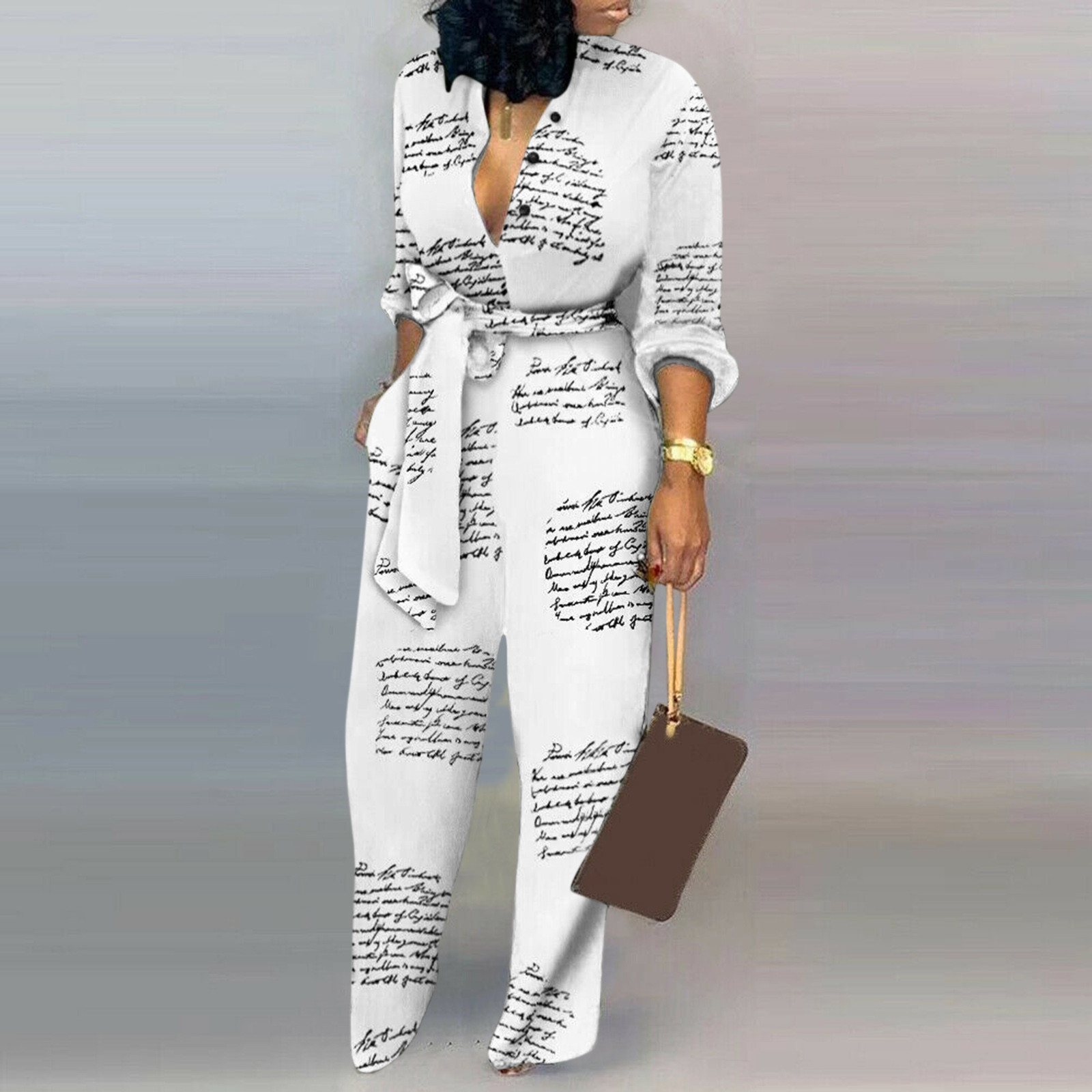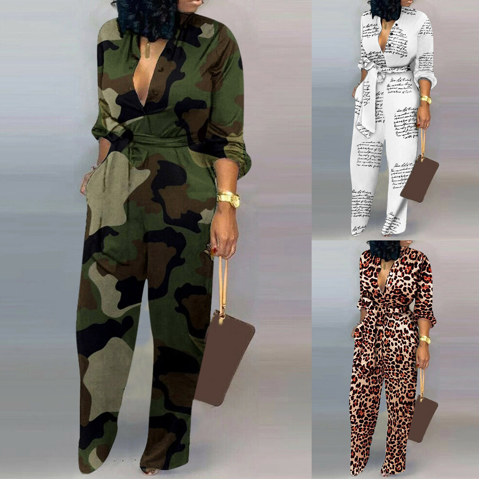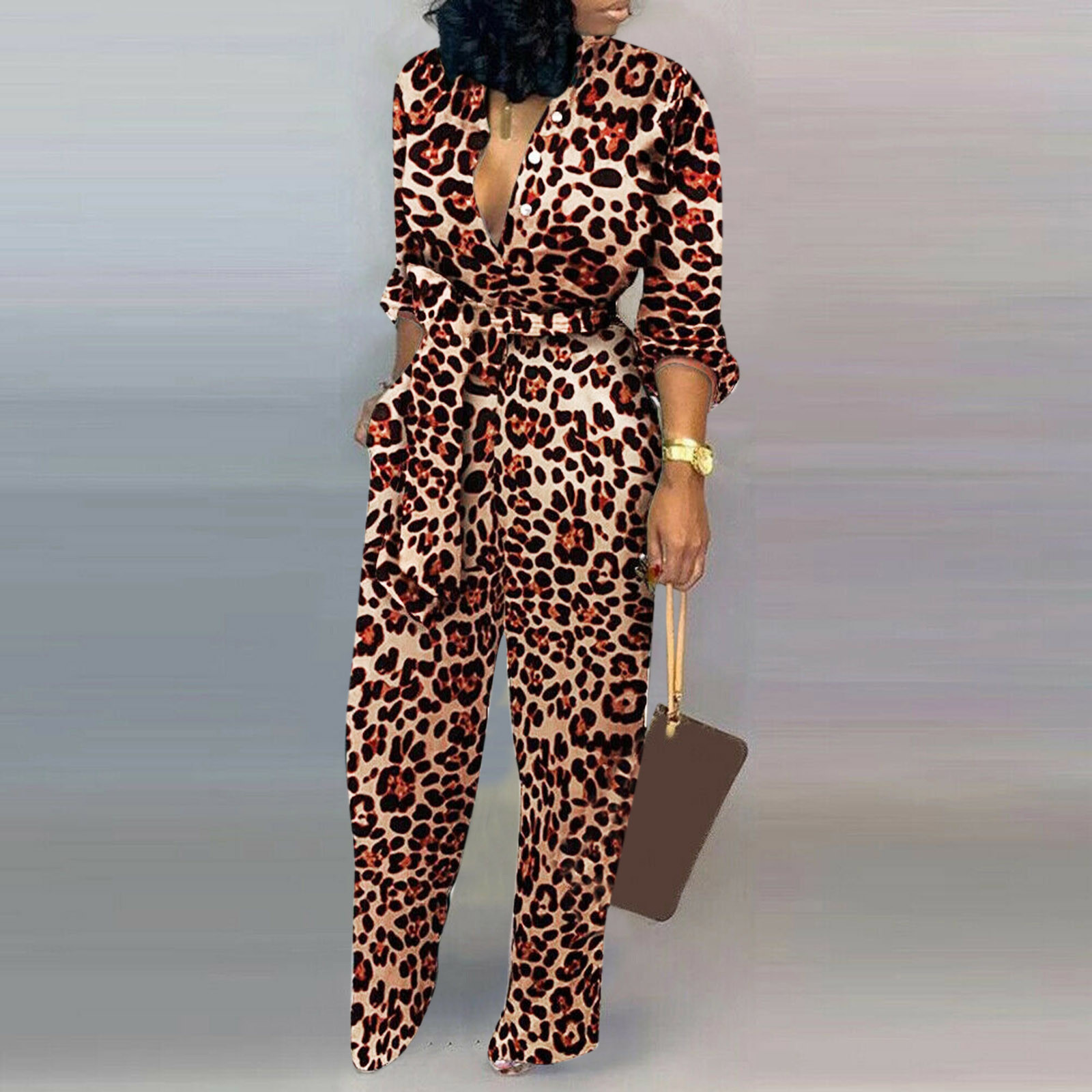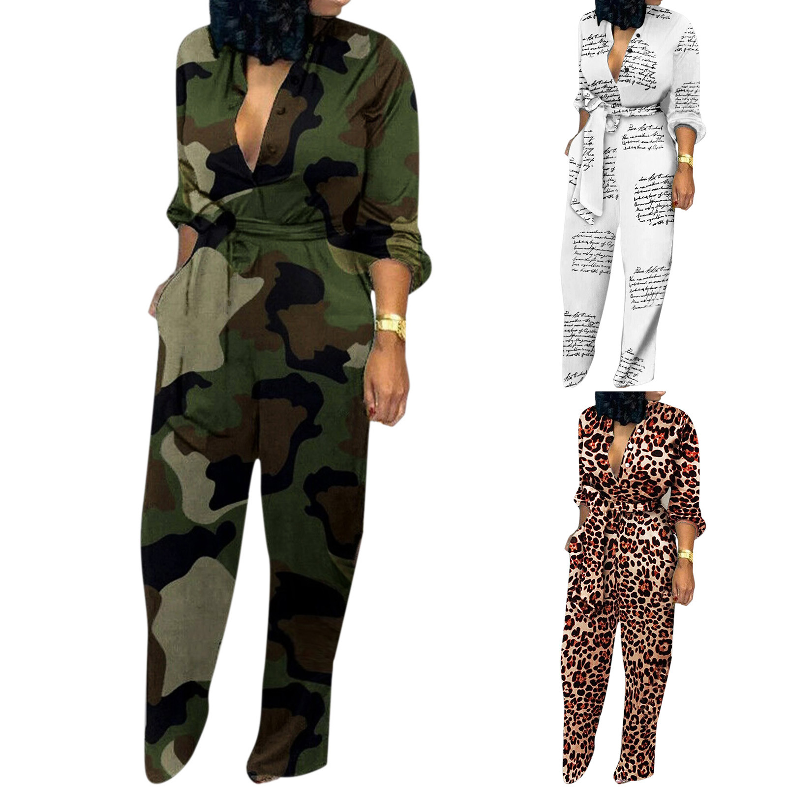 Женский Повседневный комбинезон с длинными рукавами и карманом, длинный комбинезон с пуговицами