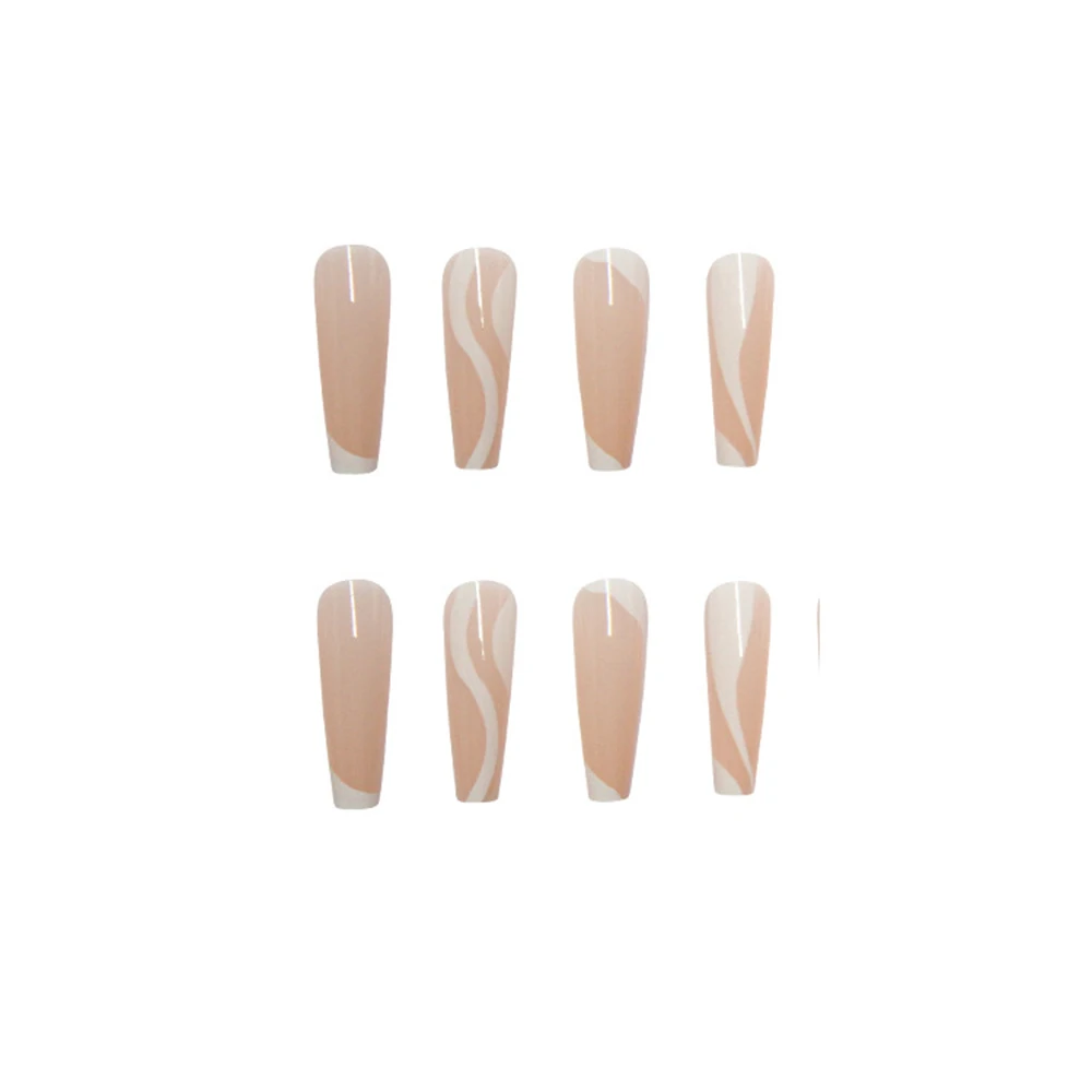 100% новый товар высокого качества. Материал изделия: АБС-пластик Тип изделия: длинные балетки Узор: белая волнистая форма Простота в использовании Подходит для использования с гелем, акрилом или стекловолокном. Посылка включает в себя: 24 шт./кор. накладные ногти + клей