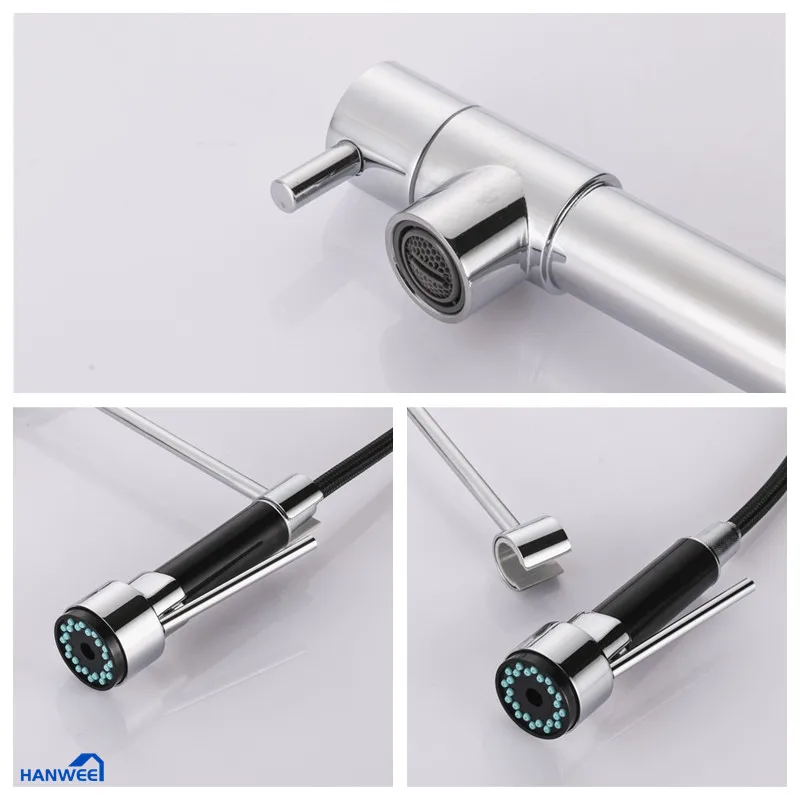Хромированный весенний кухонный кран Выдвижной двойной выход Spouts 360 Поворотный Ручной Кухонный Смеситель кран горячий холодный кран для кухни