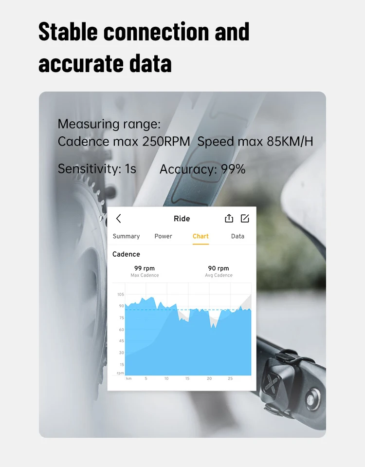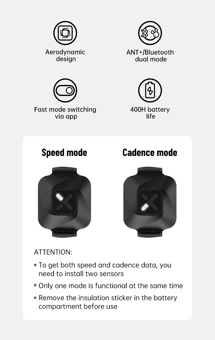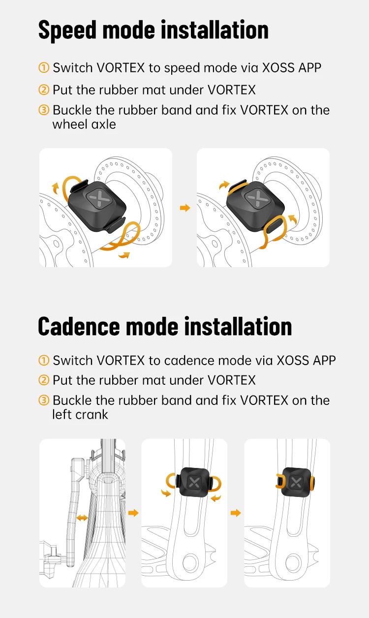 Датчик Каденции XOSS отслеживает вашу скорость и скорость с помощью индукции земли, нет необходимости в магнитах.