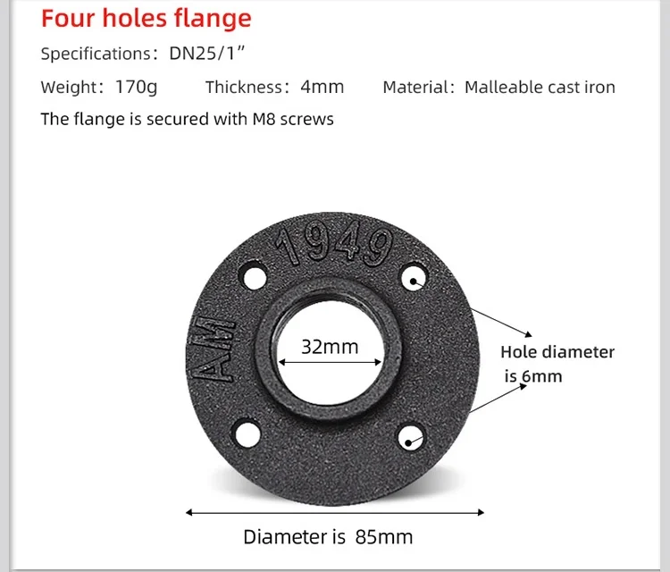 1 шт. DN15 напольный фланец, Черный чугун, промышленный фланец, стеновое основание трубы, Опорное основание, 4 отверстия, напольный фланец