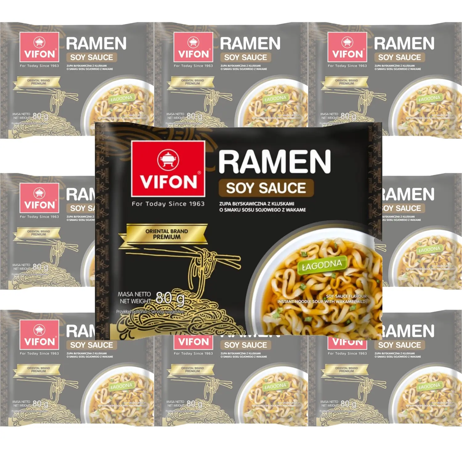 Набор из 10 упаковок Лапши быстрого приготовления "Рамен" с соевым соусом и морскими водорослями. Компания VIFON – одна из первых компаний во Вьетнаме, которая ориентирована на выпуск традиционной лапши быстрого и простого приготовления.