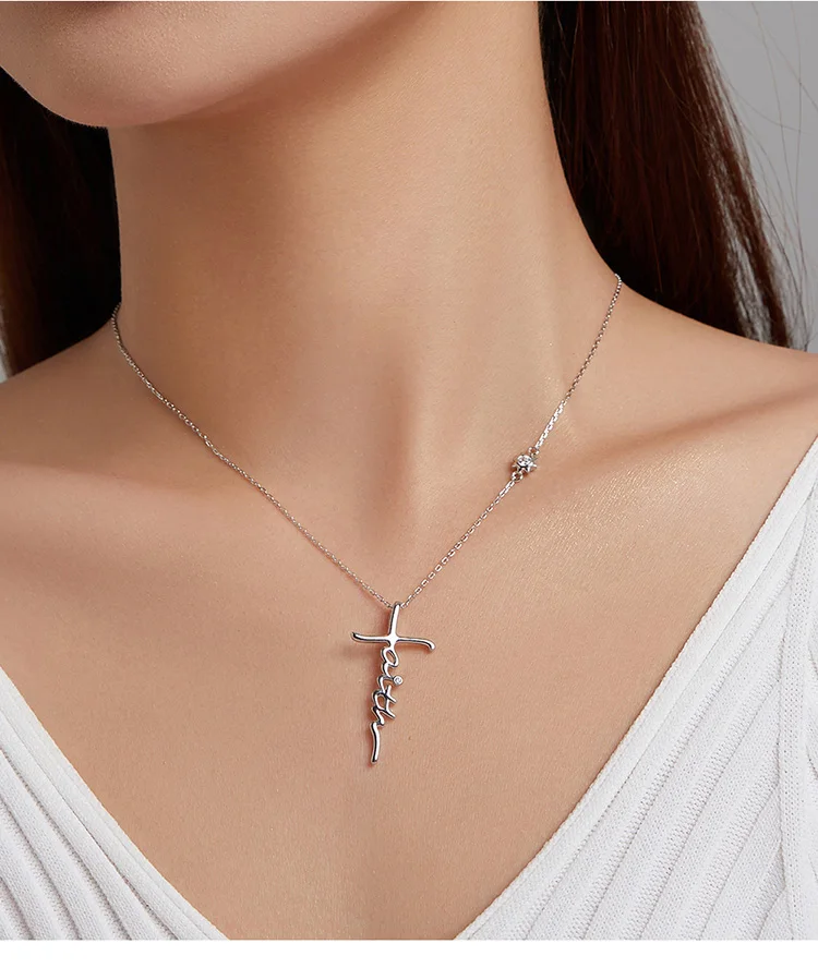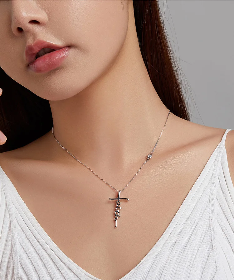 ❤【Description】The подвеска с крестом полна текстуры. Это ожерелье с покрытием из белого золота с маленькими звездами изысканно и модно. Мерцающий Циркон украшает его, добавляя ощущение моды.