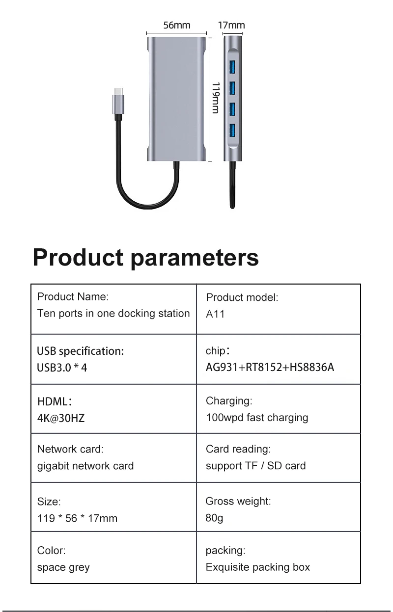 Этот продукт является Тип-C мобильный телефон компьютер док-станция, используется в компьютерах или мобильный терминал устройства с Тип-c интерфейсы, обеспечивая Тип с разъемами типа c и USB интерфейс преобразования телефон зарядное устройство, автомобильное зарядное устройство, функции передачи данных и проекции экрана