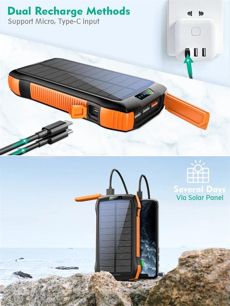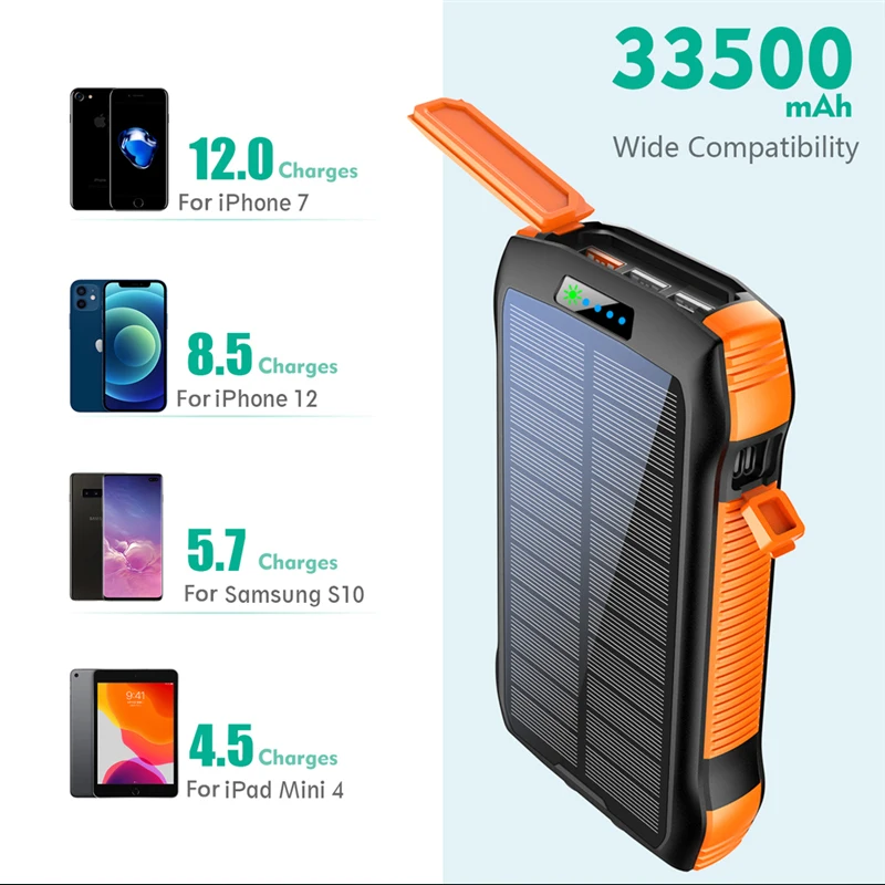 10 Вт Быстрое Qi Беспроводное зарядное устройство на солнечной батарее 33500 мАч PD20W Powerbank для iPhone 12 Samsung Xiaomi Powerbank с освещением для кемпинга