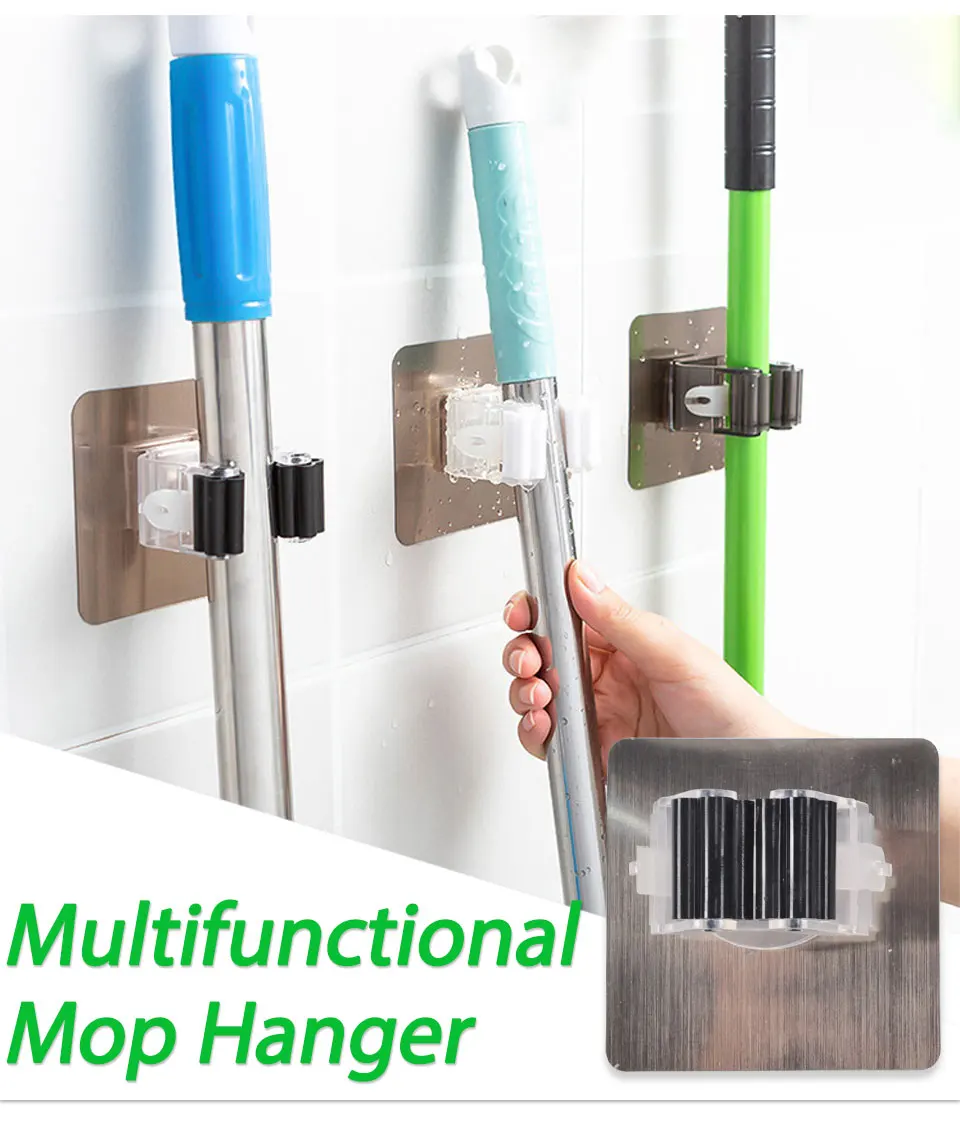 2/4pcs Adhesive Multi-Purpose Hooks Wall Mounted Mop Organizer Holder RackBrush Broom Hanger Hook Kitchen bathroom Strong Hooks