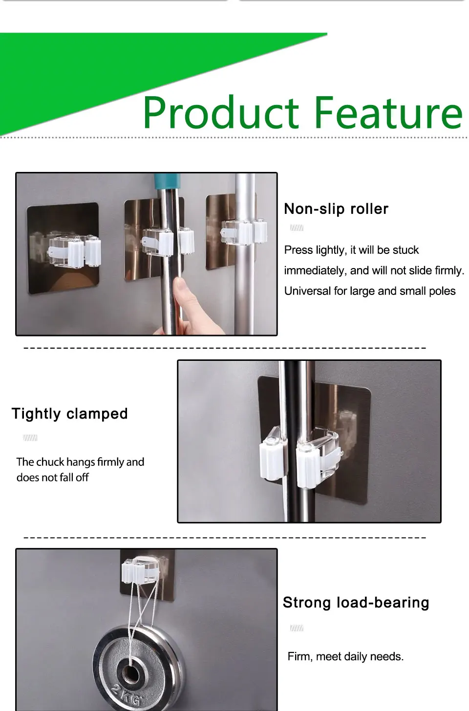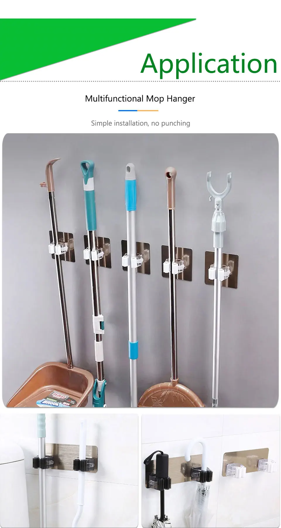 High quality steel spring. One-click security accessory. Clear arrangement of home and garden equipment and tools. Through high quality processing to achieve long life. Wear-resistant rubber rollers and buffers ensure long service life. Lift the handle to release easily, and the ball will automatically adapt to each thickness of the handle and hold tightly. There are all kinds of tools: it can tidy not only brooms, mops, but any tool with hooks. Screw it to the wall. Install brooms, mops, shovels, and rakes easily, instead of propping brooms against walls and corners.