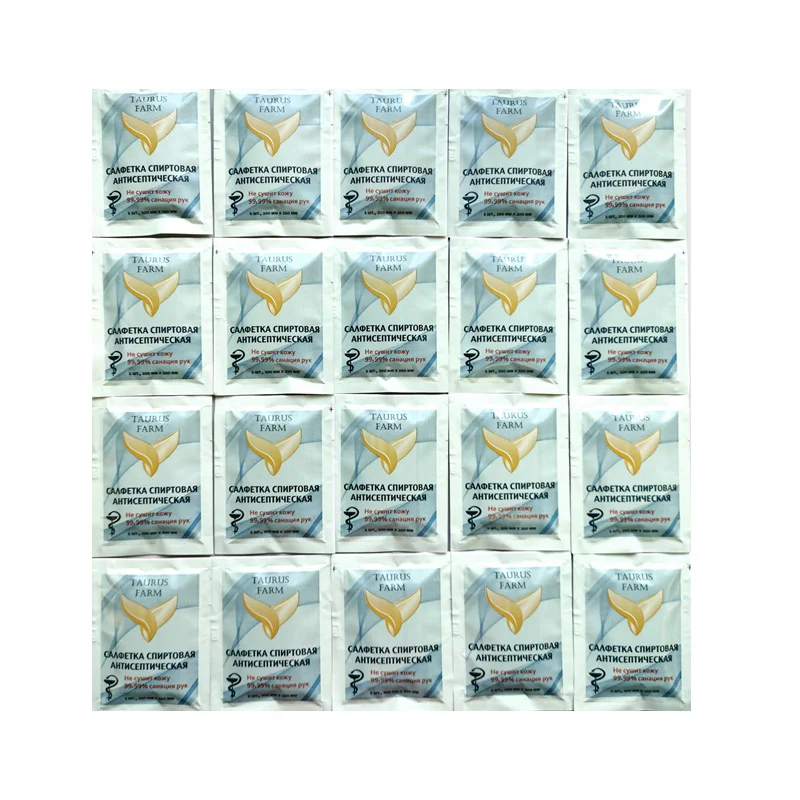 Антибактериальные спиртовые салфетки собственного производства "TAURUS FARM" в индивидуальной упаковке. Предназначены для обработки поверхности рук и других частей кожи, а так же для обработки поверхностей на рабочем месте, клавиатуры, телефона, интерьера автомобиля.