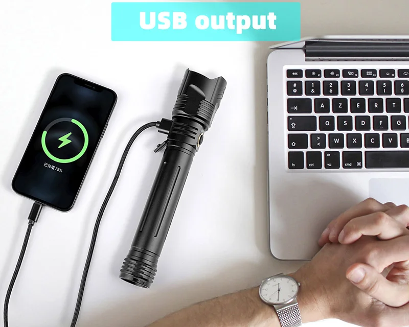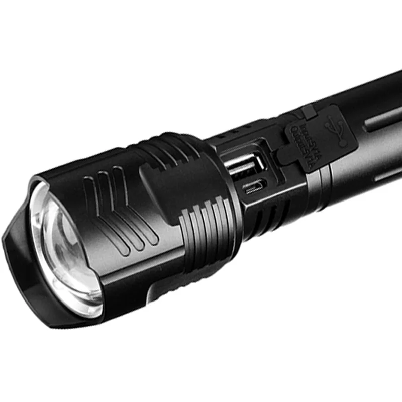 【USB перезаряжаемый фонарик 】 встроенный входной порт Mrico, который позволяет заряжать тактический фонарик удобно. Двойные 21700 батареи, емкость reachs до 10000 мАч.