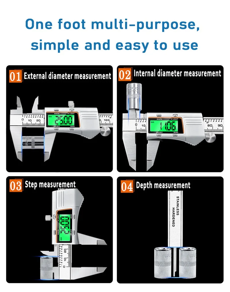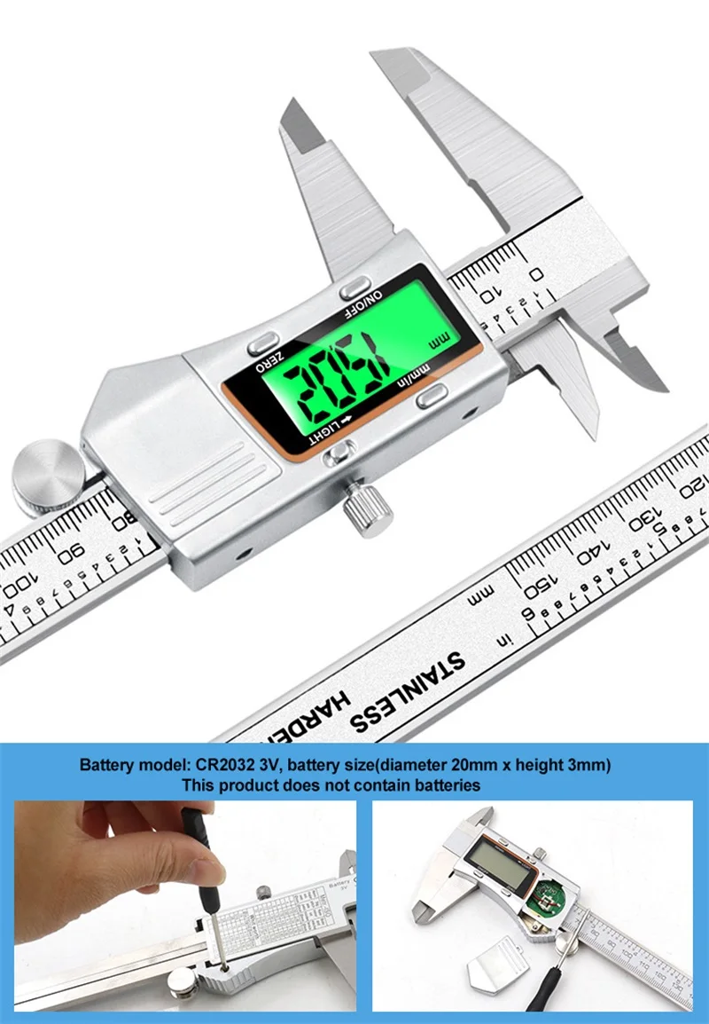 Цифровой штангенциркуль из нержавеющей стали с ЖК-дисплеем, Электронный штангенциркуль, металлический микрометр 0-150 мм/200 мм/300 мм, измерительный инструмент, штангенциркули$23,98/Шт/Лот 1