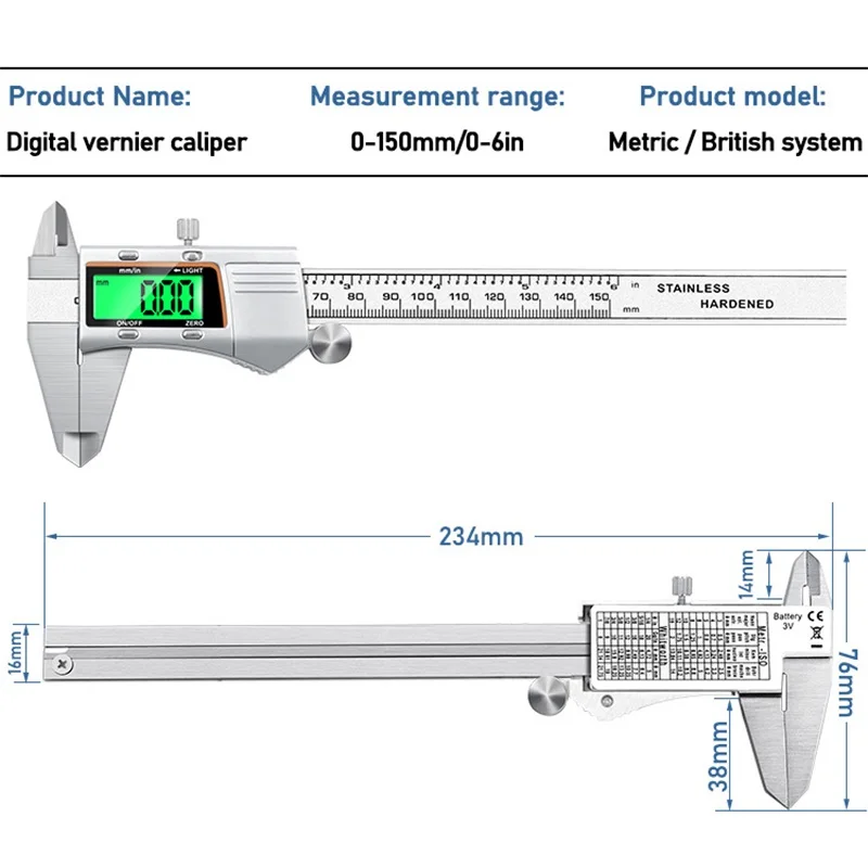 6-дюймовый электронный цифровой металлический штангенциркуль из нержавеющей стали Wanhenda 150 мм измерительный инструмент штангенциркуль$14,02/Шт/Лот 1