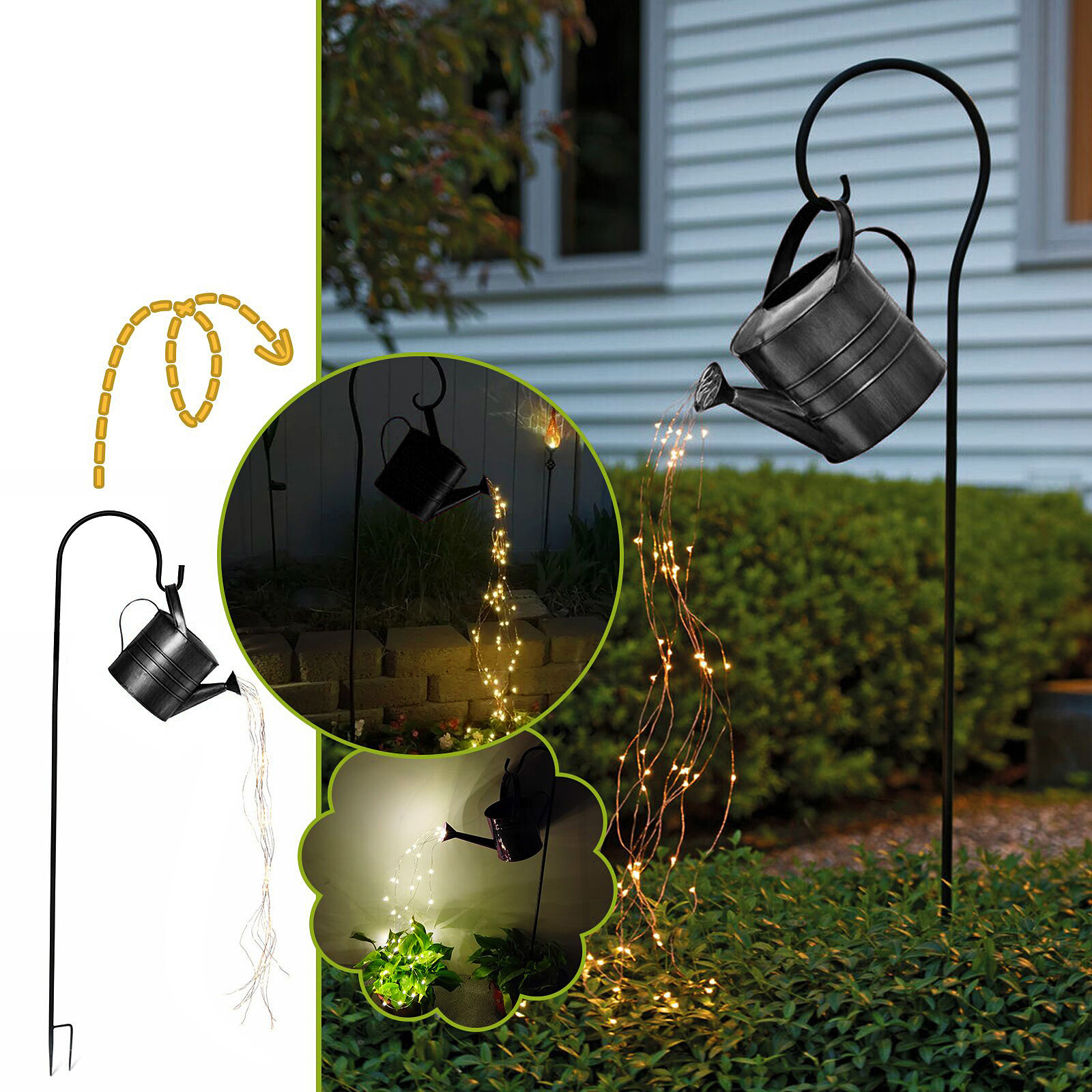 Лейка разбрызгивает ваш сад сказочным светом,Создайте уникальное фокусное место в вашем послетемном саду, открыв каскад самых маленьких огней. Встроенная кнопка питания батареи Поколение, теплые белые светодиоды microdot крепятся на деликатную медную проволоку- Слабый Бриз принесет движение, добавляя очарование. Аккумулятор остается сухим на внутреннем крючке, кронштейн может быть разобран для сборки Сталь с порошковым покрытием, медная проволока с теплыми белыми светодиодами, пластиковый аккумулятор, электроника Защита от замерзающих температурИнформация о продукте: