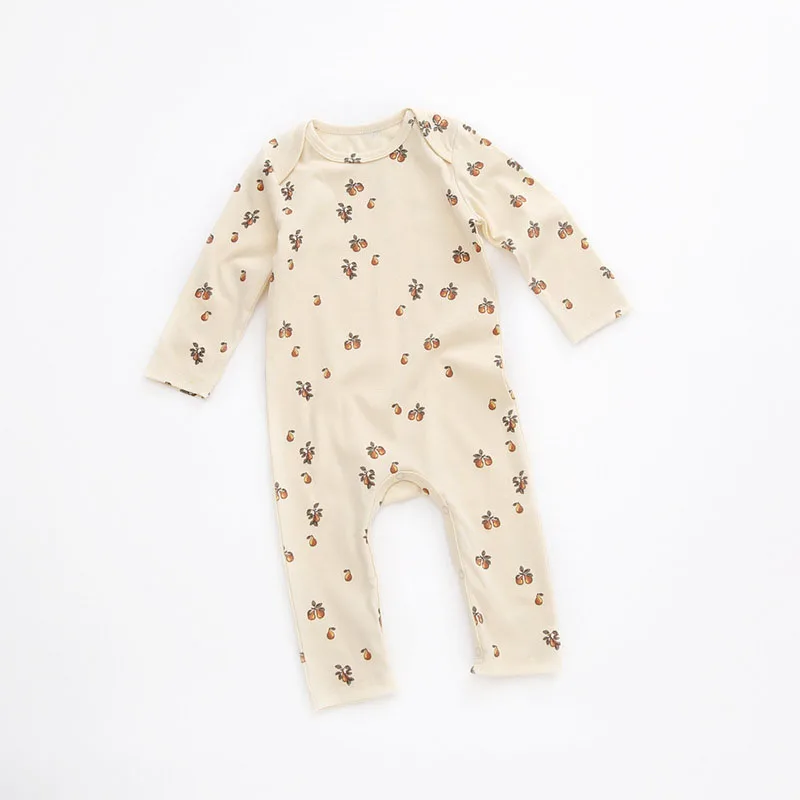Комбинезон с длинными рукавами для новорожденных; Брендовый комбинезон из органического хлопка для маленьких мальчиков и девочек с цветочным рисунком вишни; Весенне-осенняя одежда для новорожденных