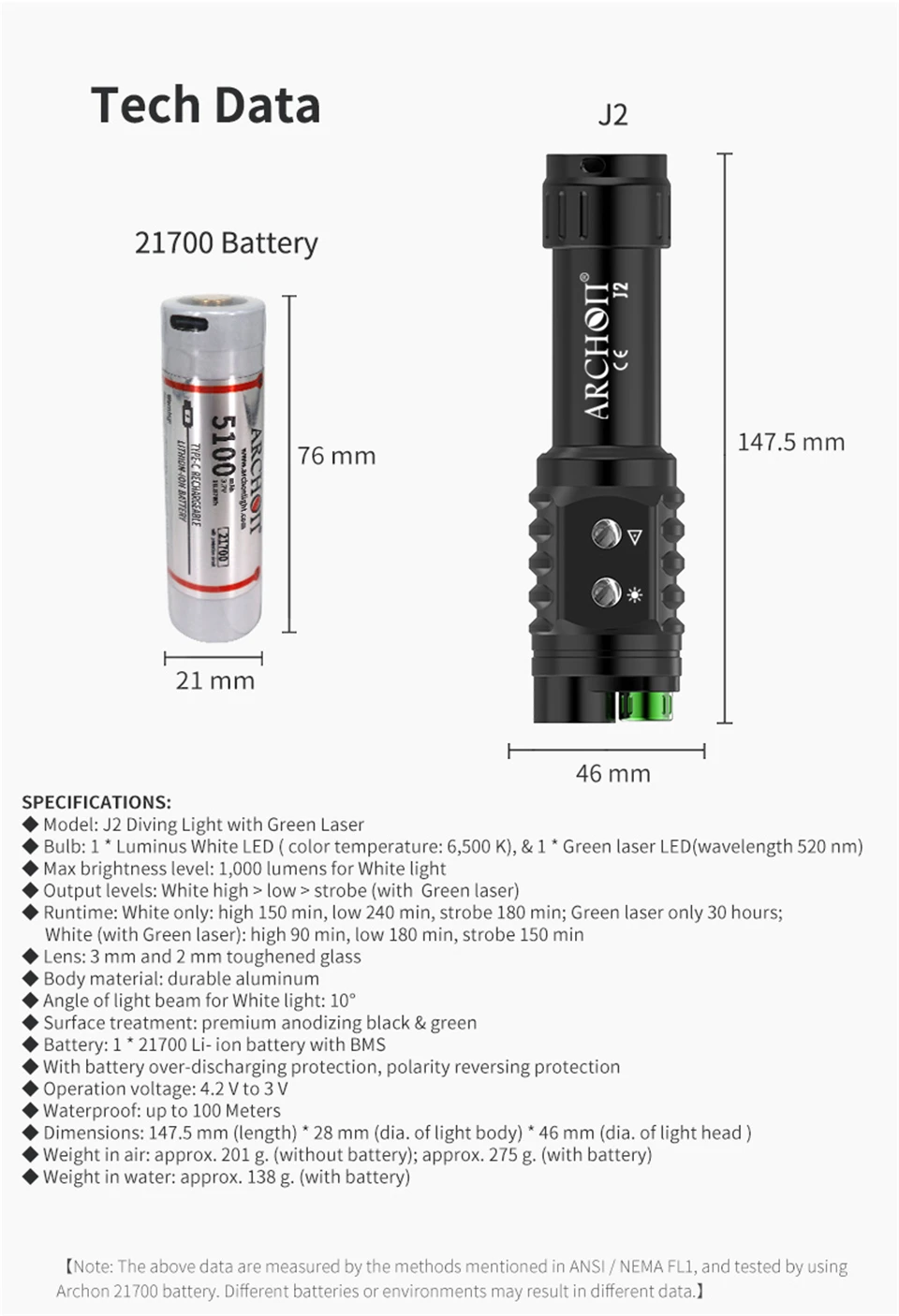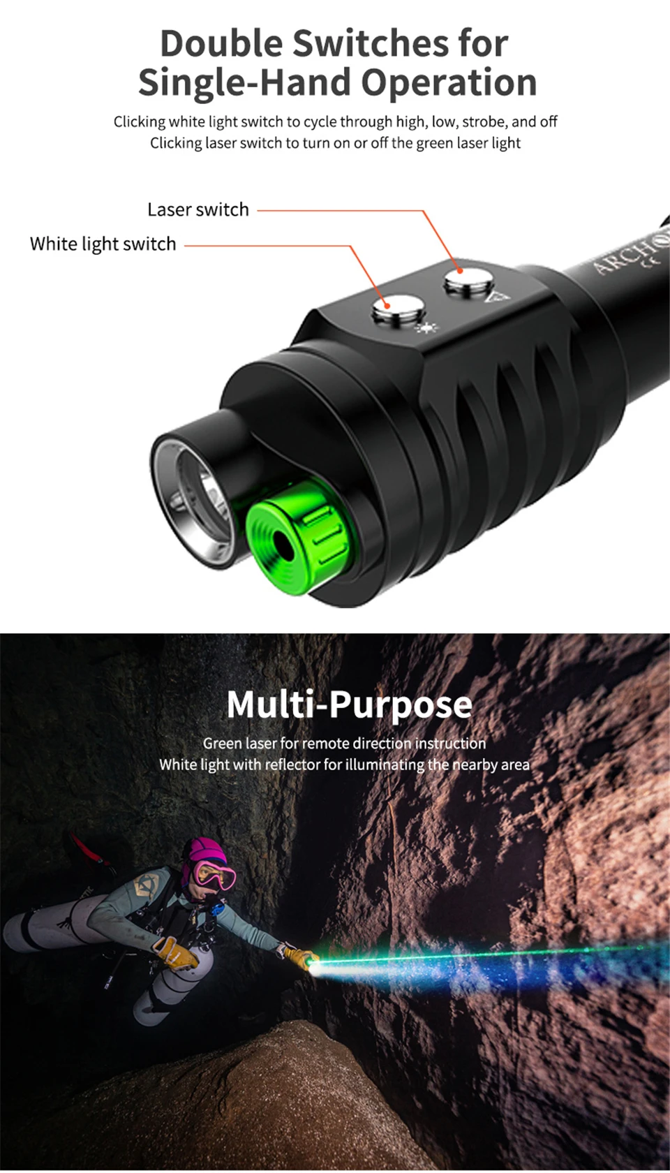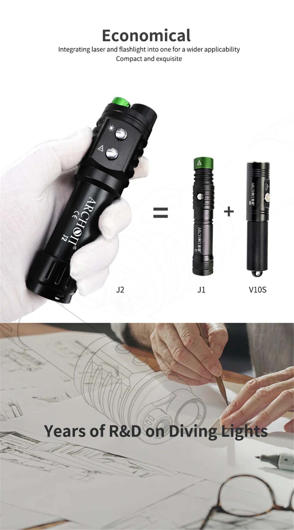 Archon J2 2 in 1 1000 lumen 100m Underwater Diving Flash Lighting Coaching Command 1 Watt Green Laser Dive Spotlights