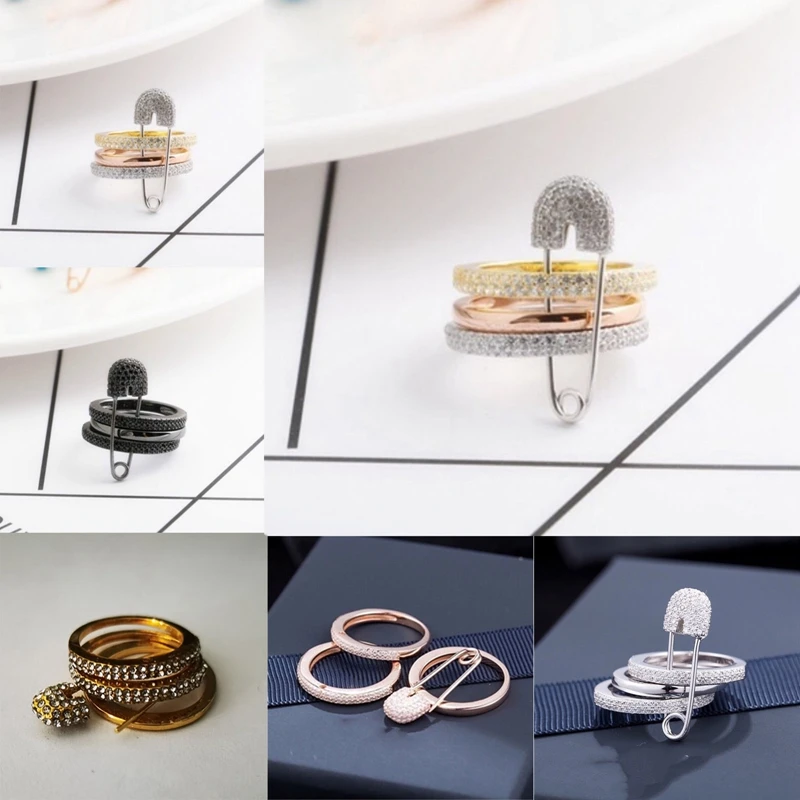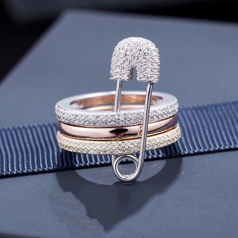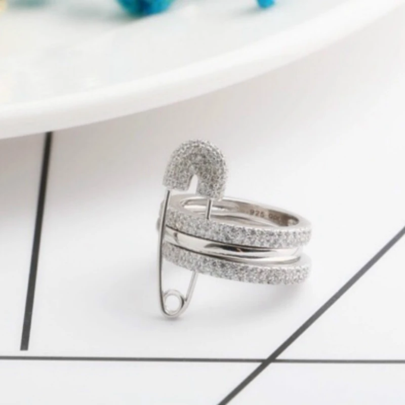 Модный комплект серебряных колец на палец для женщин, кольцо с булавкой из кубического циркония, женский аксессуар для вечеринки, ювелирные изделия