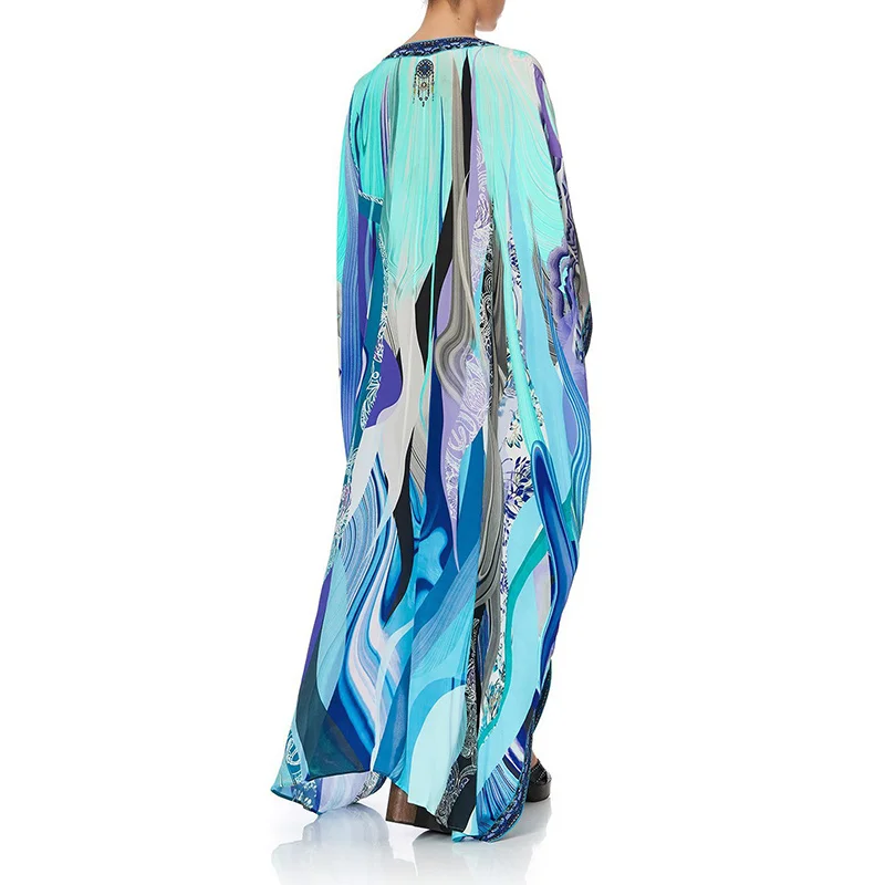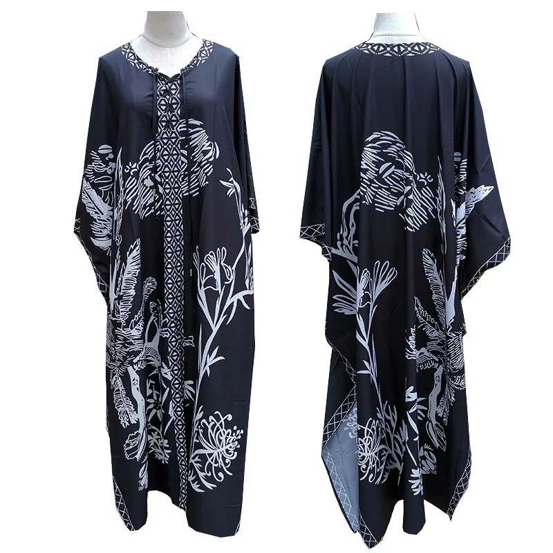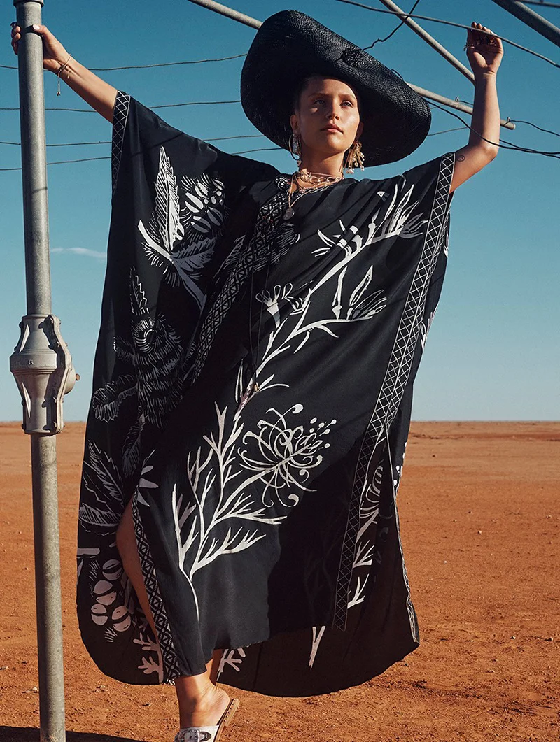 Женское пляжное платье Бохо размера плюс, черное пляжное платье с принтом, женское повседневное Свободное платье, парео длинное восточное платье, прикрытие для бикини