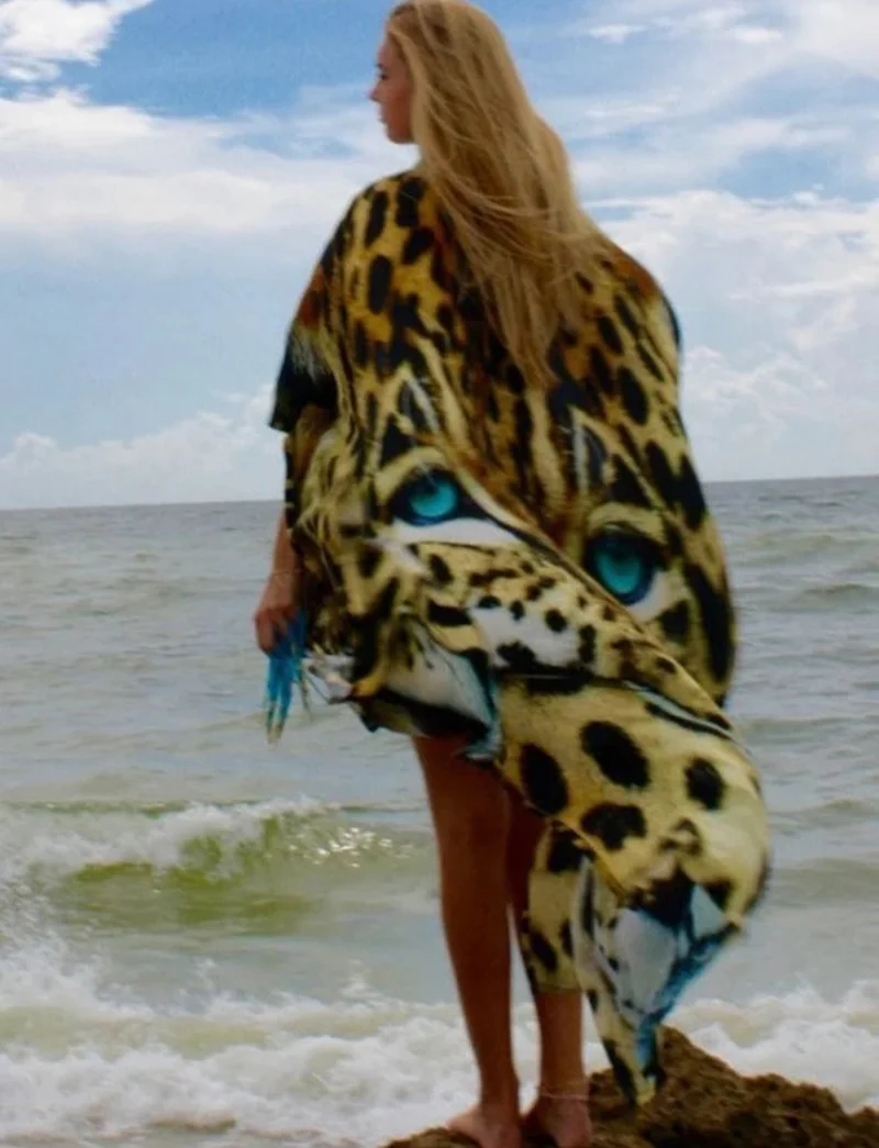 Бикини, накидка, сексуальное кимоно с принтом тигра 2020, халат, пляжный купальник, накидка, бохо, Свободный длинный кардиган, пляжные туники