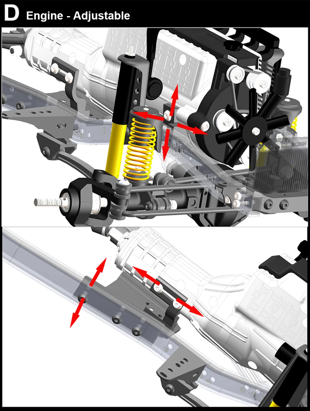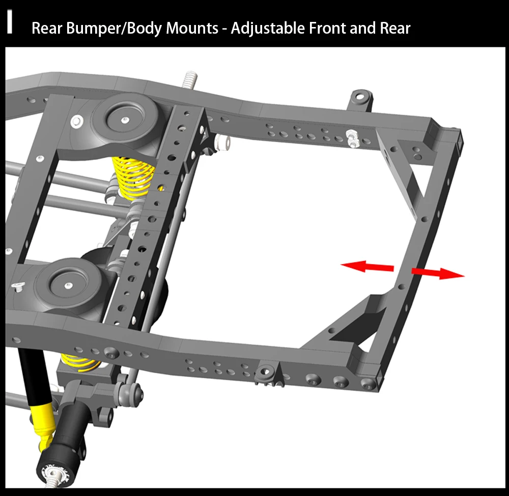• Дополнительные отверстия были добавлены к рельсам рамы для изготовления колесной базы (регулируемая: максимум 343 мм, минимум 295 мм)