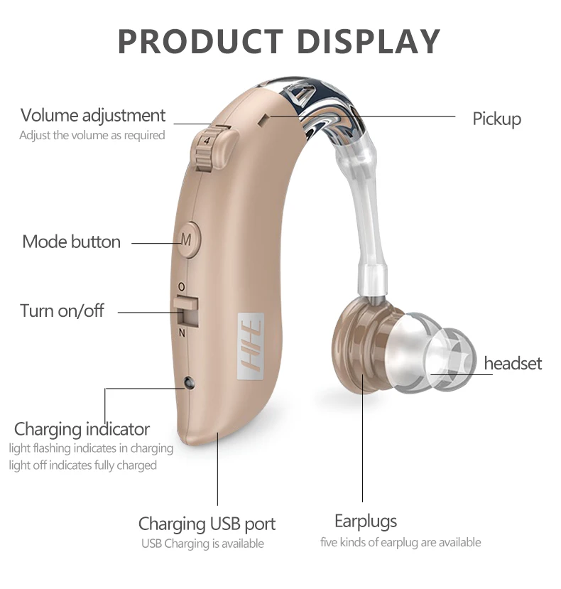 Примечание: слуховой аппарат не включает штепсельную вилку A/C, в комплект входит только usb-кабель для зарядки. Пожалуйста, заряжайте его с помощью адаптера телефона.