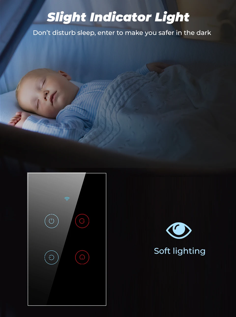2. Мощность переключателя 0 ~ 1000 Вт. Если мощность лампы меньше 0 Вт или более 1000 Вт, пожалуйста, не используйте этот переключатель, в противном случае он не будет работать нормально.