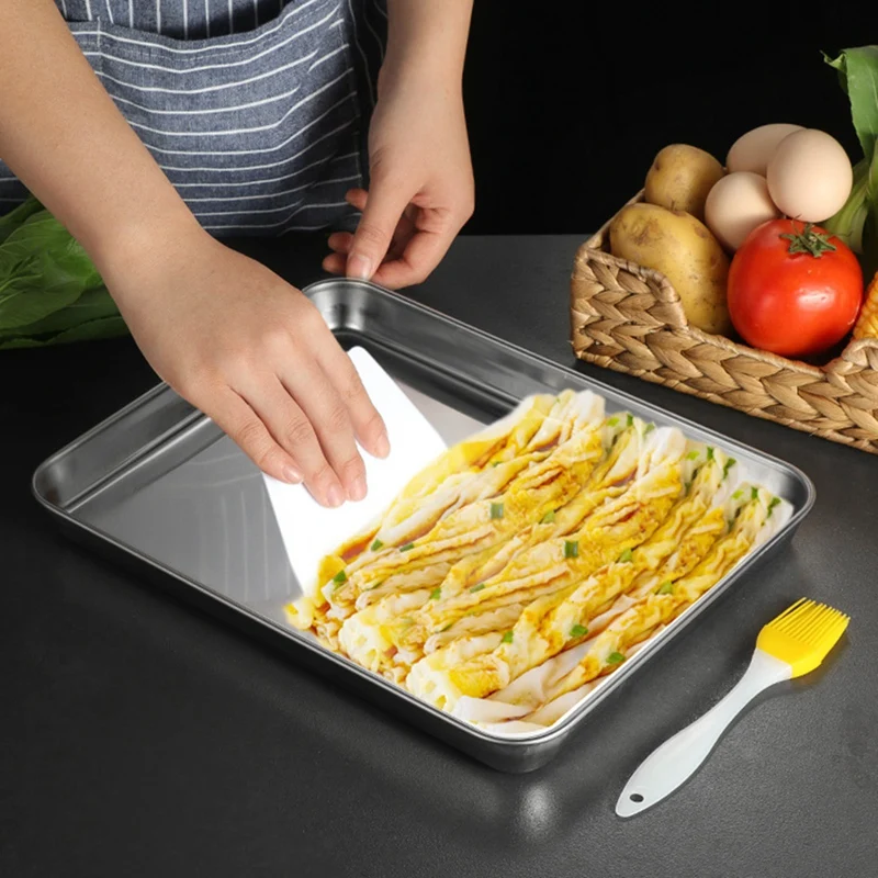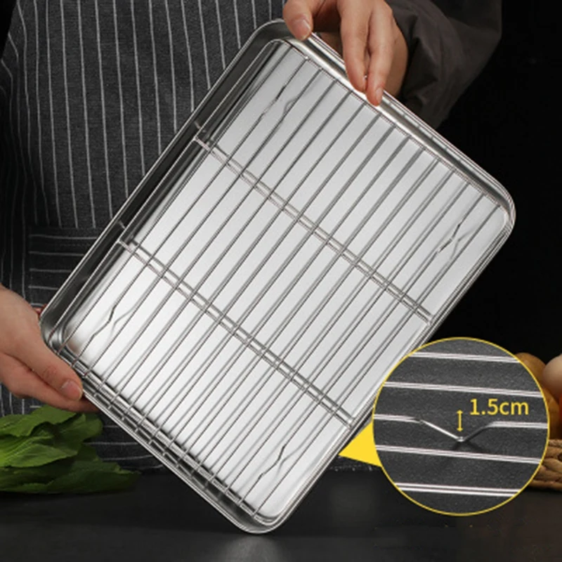 Охлаждающая стойка: стойка для выпечки идеально подходит для выпечки. Еда помещается на стойку для выпечки, которую можно печь более равномерно. Кроме того, стеллаж для выпечки и лоток для выпечки могут быть разделены, что очень удобно использовать отдельно.