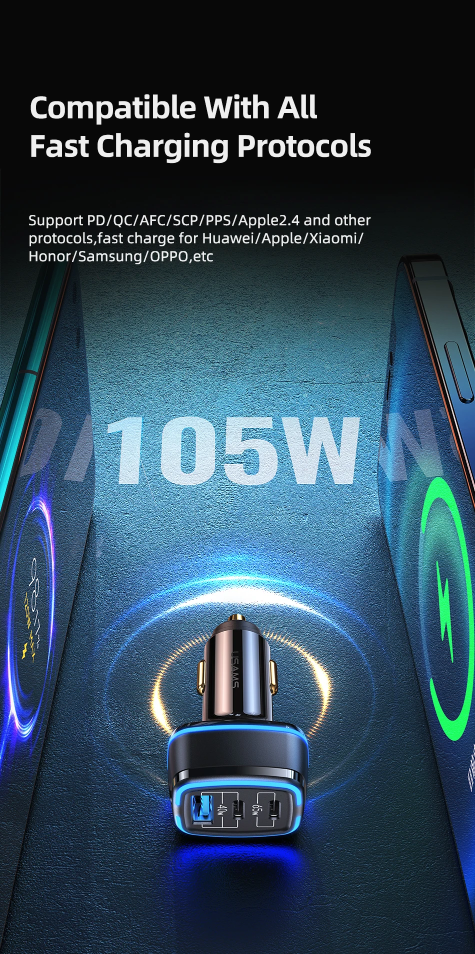 Название: C24 105W 3 порта быстрое автомобильное зарядное устройство