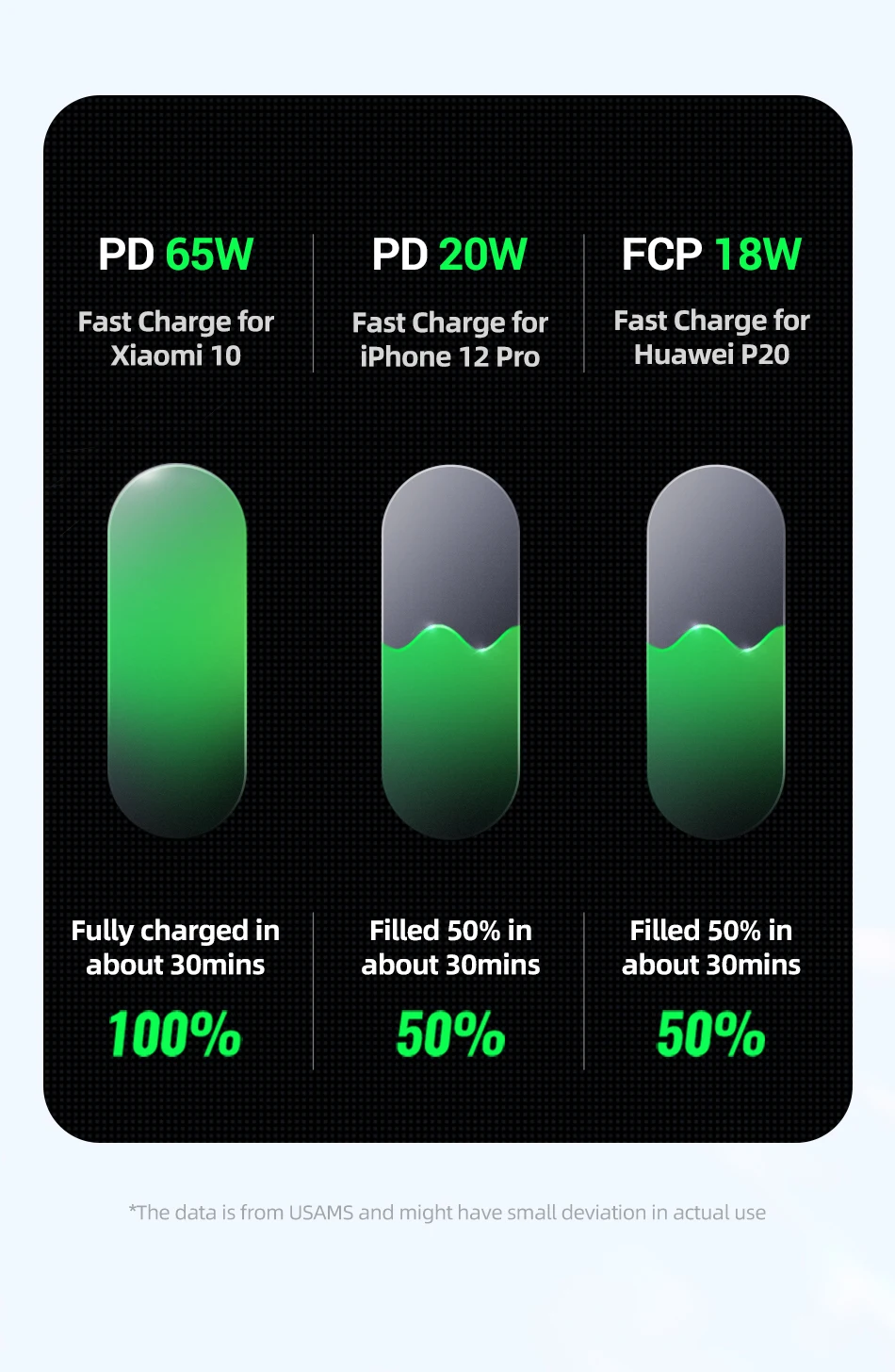 USB + Type-C2 Выход: 20 Вт + 65 Вт