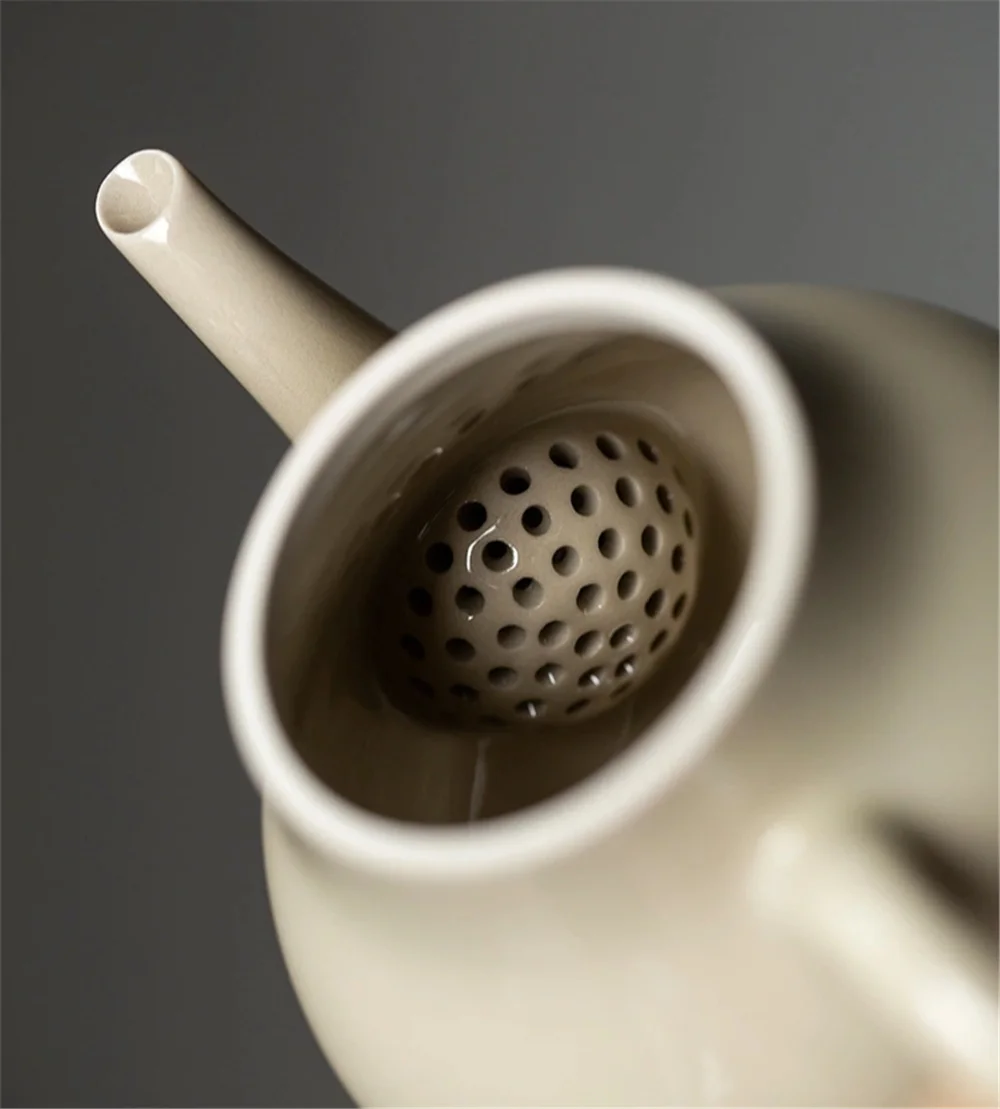 ● Кнопка крышки круглая и удобная. ● Нижняя часть тщательно отполирована, плоская и гладкая, и она устойчиво размещается. ● Носик имеет гладкую кривизну и поток воды гладкий. ● Конструкция сферического отверстия полностью фильтрует чайные коронки.