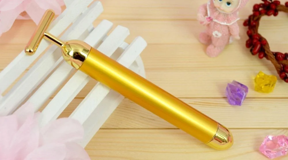 24K Золотой Пульс Водонепроницаемый T Форма лица ролик забота о коже Красота бар массажер